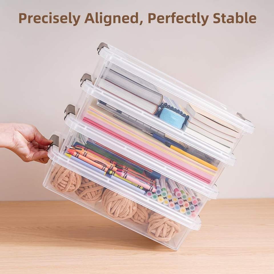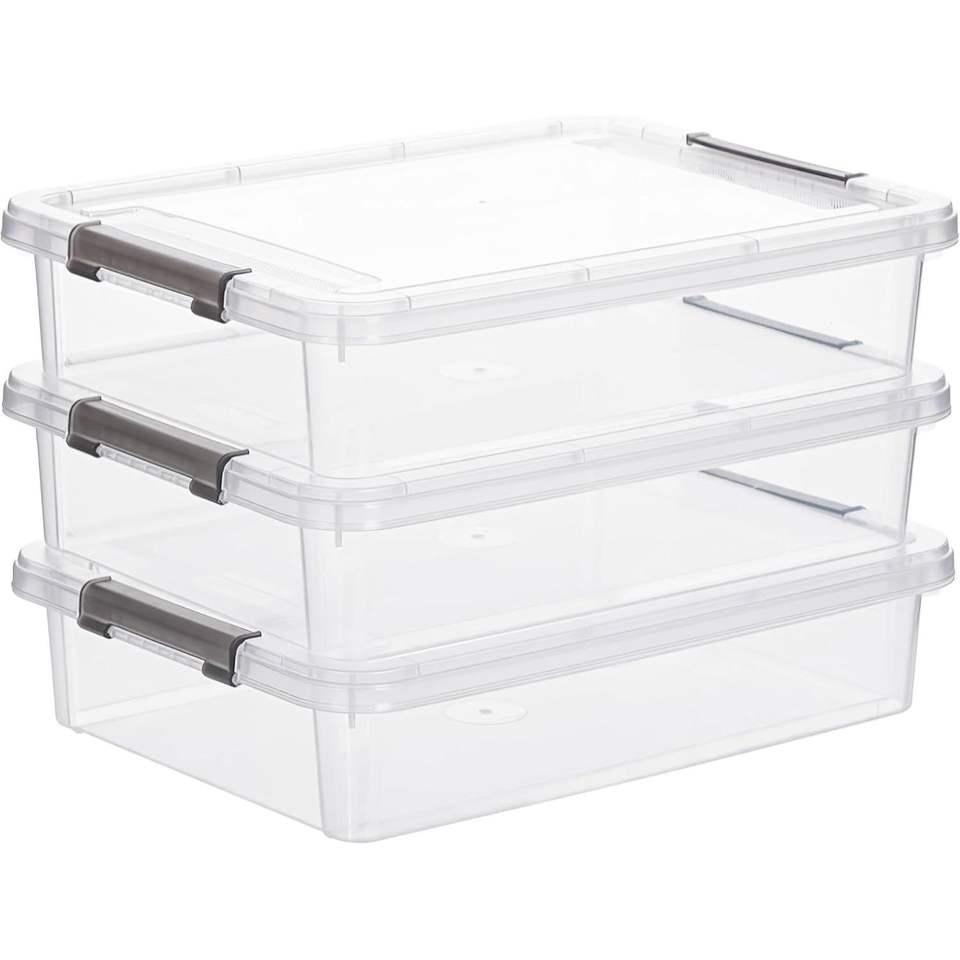 กล่องเก็บของพลาสติกใส 3 ชิ้น พร้อมฝาล็อค กล่องใส่เอกสารแบบพกพา กล่องเก็บของแบบซ้อนได้ สำหรับจัดระเบียบ