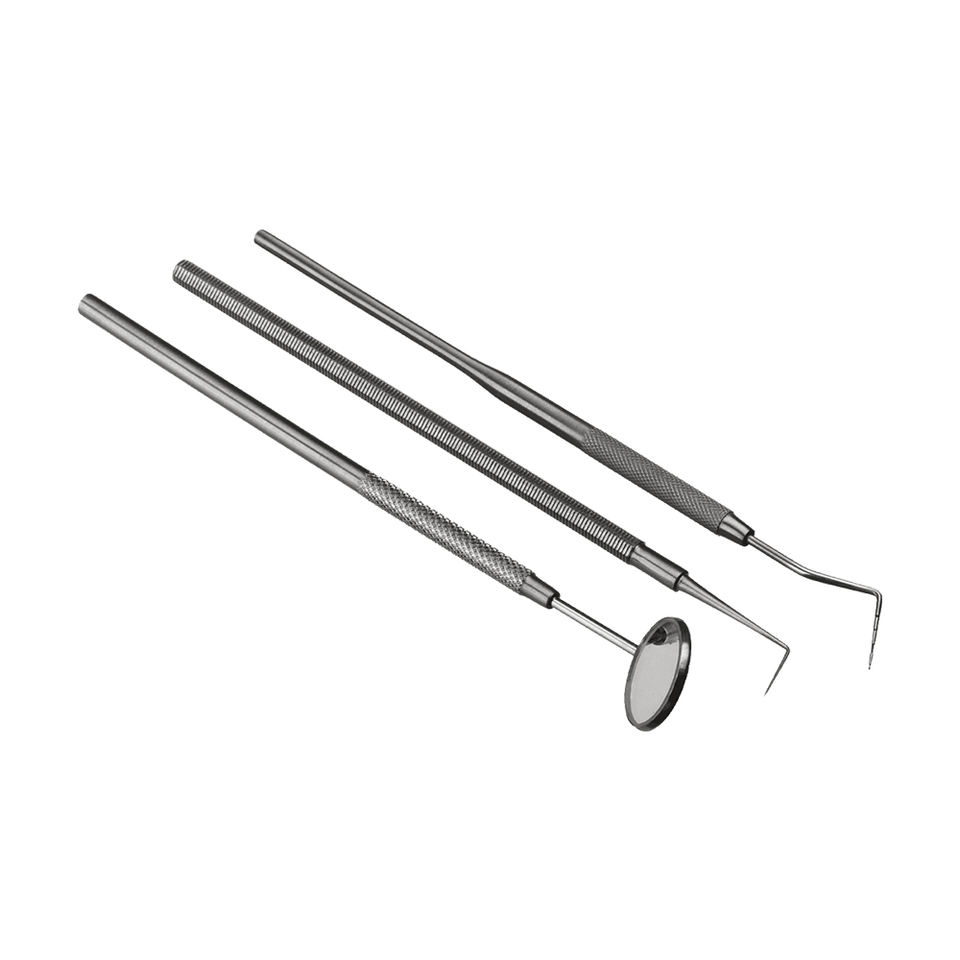ชุดเครื่องมือทันตกรรมสำหรับตรวจฟันแบบพื้นฐาน3ชิ้นเครื่องมือทำความสะอาดปากคีบสำหรับสำรวจกระจก