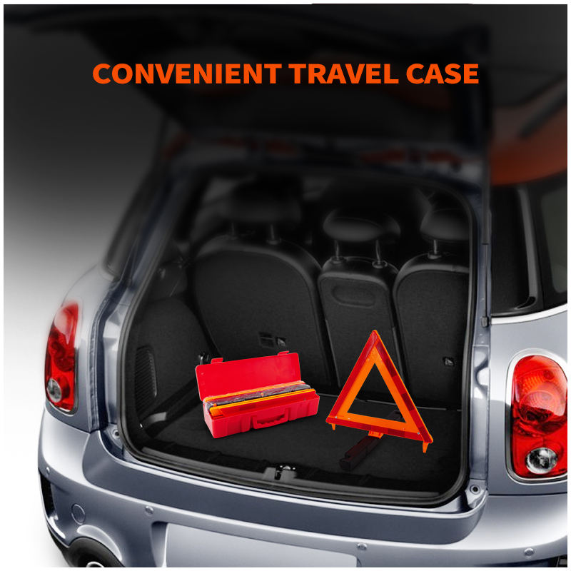 สามเหลี่ยมสะท้อนแสงเตือนแบบพับได้3แพ็คพร้อมกล่องใส่ฐานหนักป้ายจราจรฉุกเฉินริมถนนสำหรับยานพาหนะ