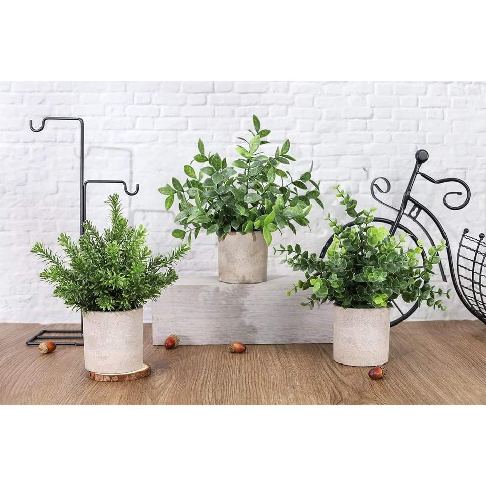 ชุดต้นยูคาลิปตัสพลาสติกประดิษฐ์ขนาดเล็ก 3 กระถาง สำหรับตกแต่งโต๊ะกลางบ้าน สำนักงาน หรือโต๊ะทำงาน สไตล์ฟาร์มเฮาส์