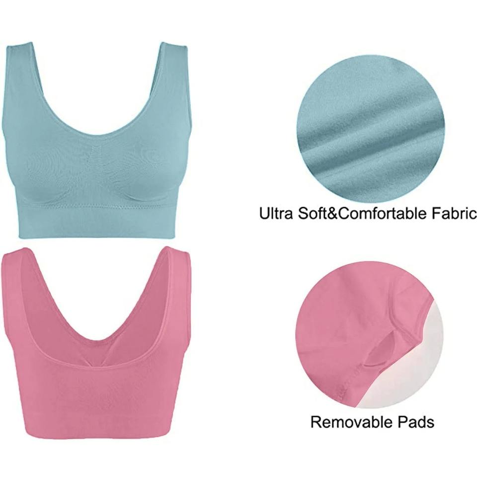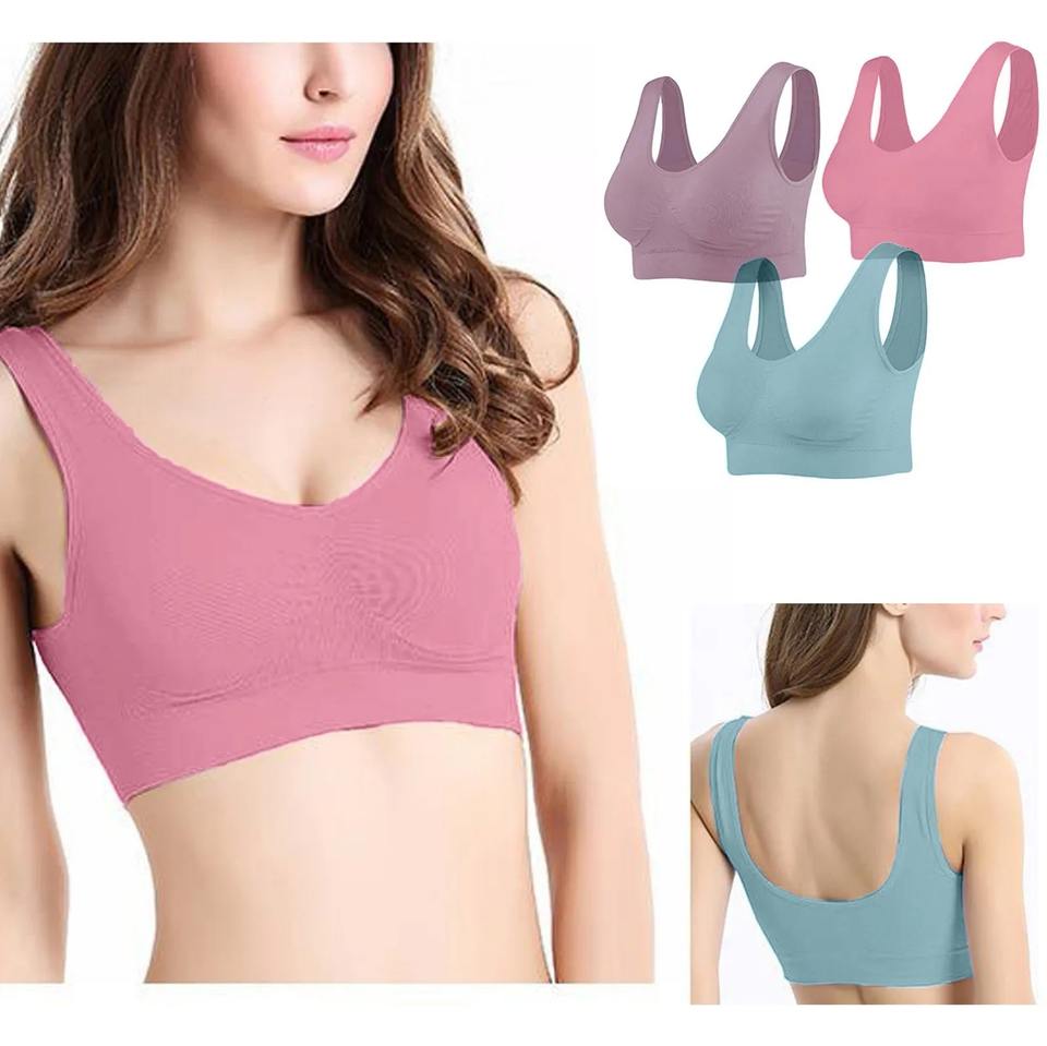 บราเล่นกีฬาไร้ตะเข็บสำหรับผู้หญิงบราโยคะพร้อมแผ่นรองที่ถอดออกได้3แพ็ก