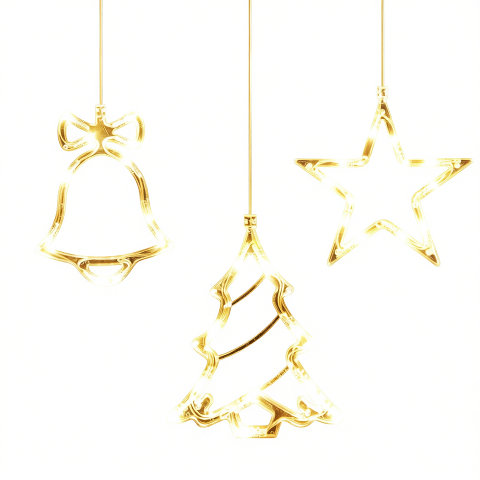 ไฟคริสต์มาส LED สีขาวอบอุ่น ใช้แบตเตอรี่ ตั้งเวลาได้ สำหรับตกแต่งภายในบ้าน รูปทรงระฆังและดาว แพ็ค 3 ชิ้น