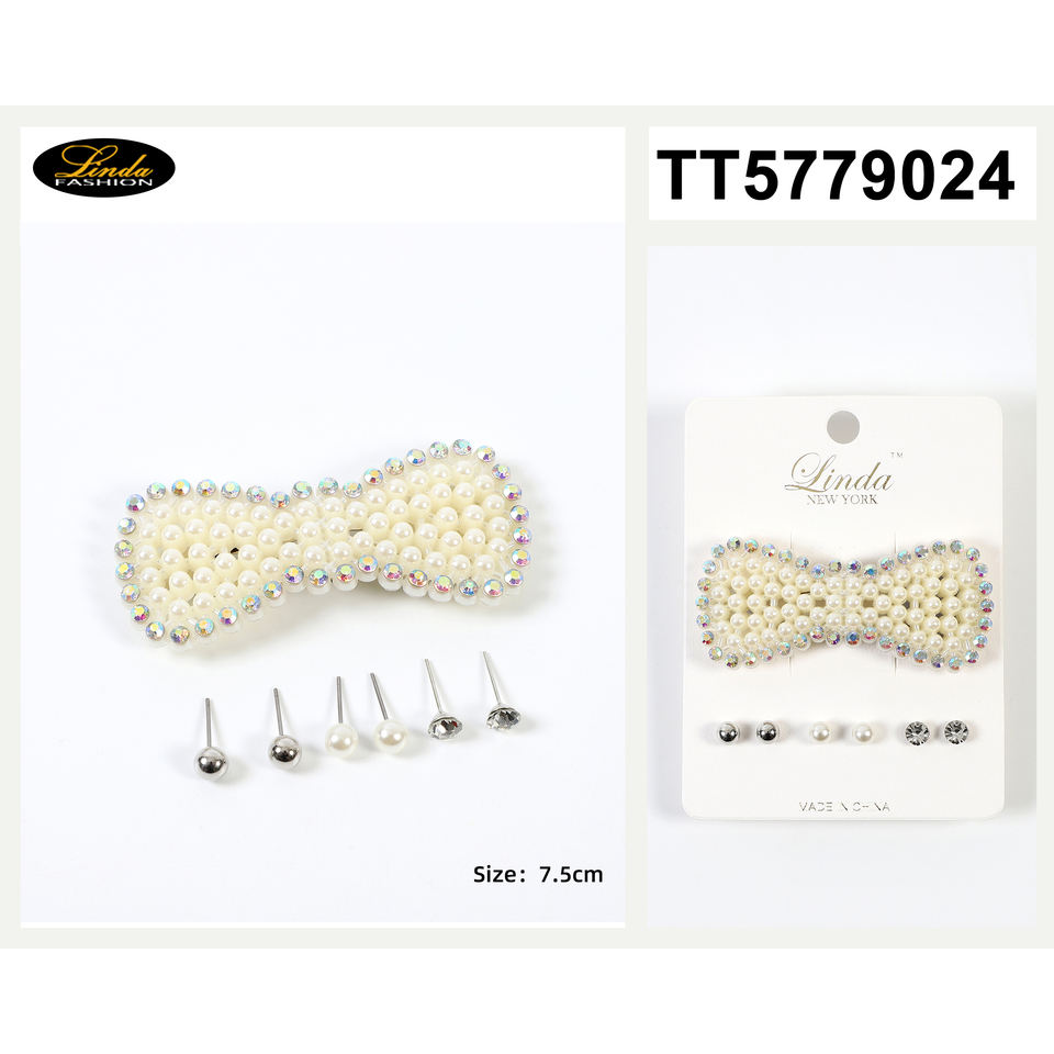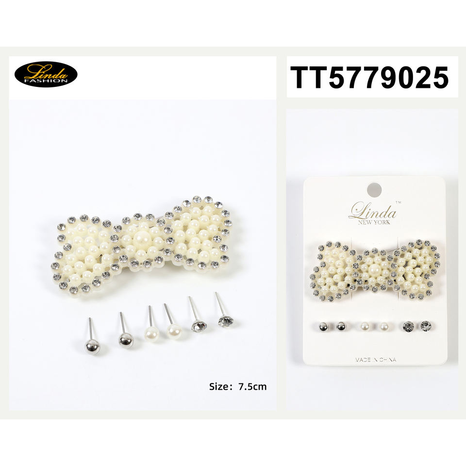 3 Pairs of Stud Hairclip Earrings Elegant Bow Hair Accessory