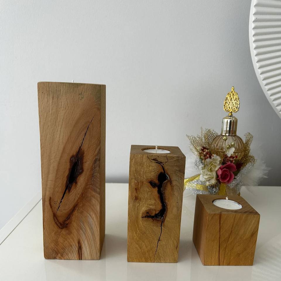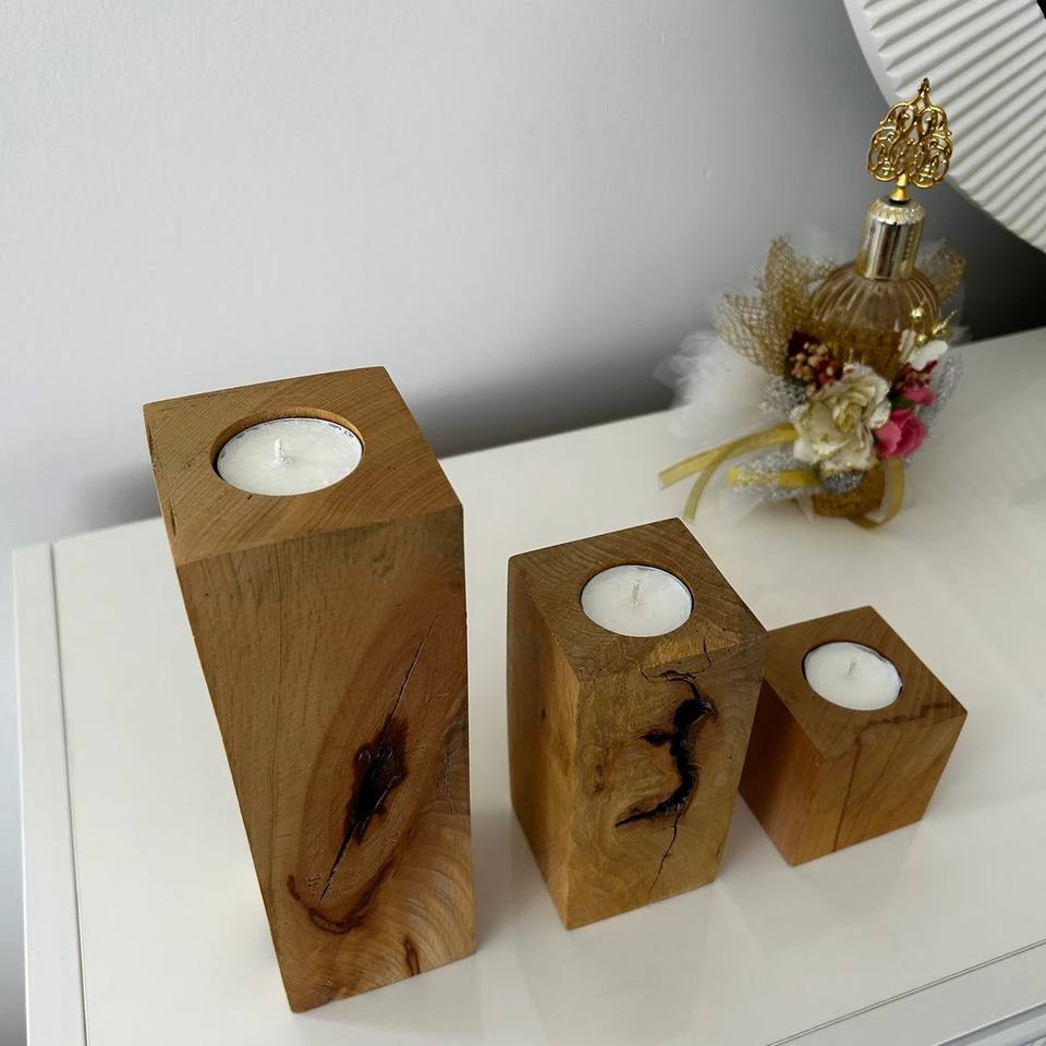 ชุดเชิงเทียน3ชิ้นทำด้วยมือทำจากไม้คุณภาพระดับพรีเมียมสำหรับตกแต่งบ้านของตกแต่งเทศกาลคริสต์มาส