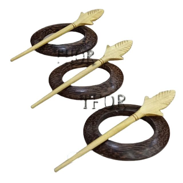 กิ๊บติดผมไม้ทรงกลมสำหรับผู้หญิง,กิ๊บติดผมทำจากไม้อุปกรณ์เสริมมาคราเม่จำนวน3ชิ้น