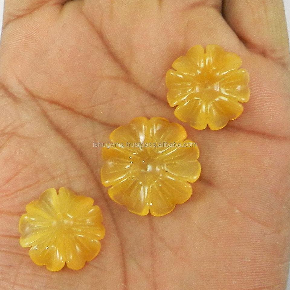 3ชิ้นชุดสีเหลืองนิลดอกไม้รูปร่างแกะสลัก,พลอยสำหรับต่างหูและจี้ทำ IG4018