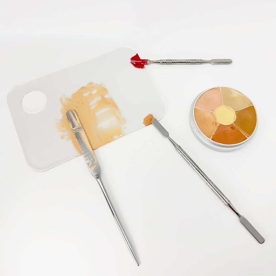 3ชิ้นไม้พายแต่งหน้าสแตนเลสเครื่องมือผสมเครื่องสำอางเครื่องมือผสมโลหะอุปกรณ์ศิลปะเล็บห้องปฏิบัติการที่มีคุณภาพสูงไม้พายเครื่องสำอาง