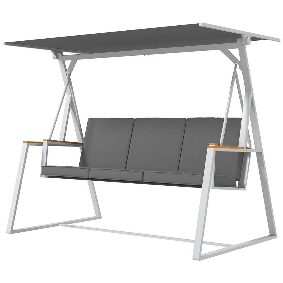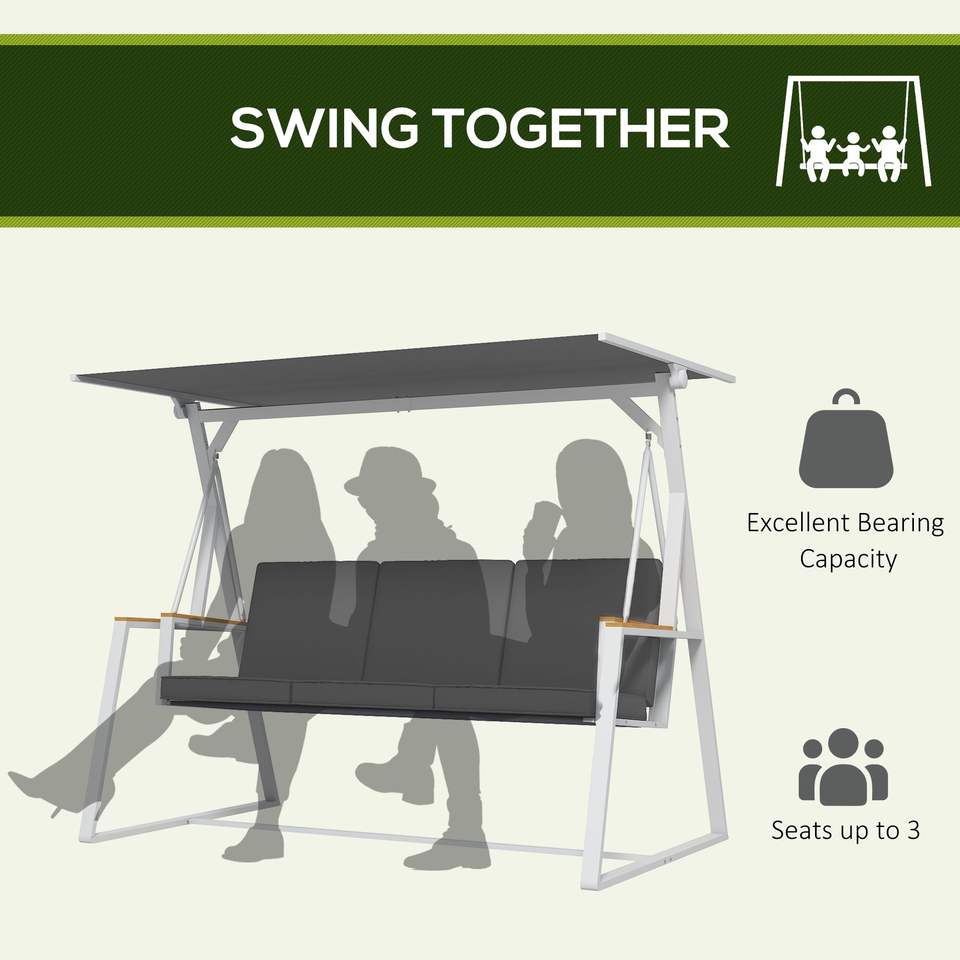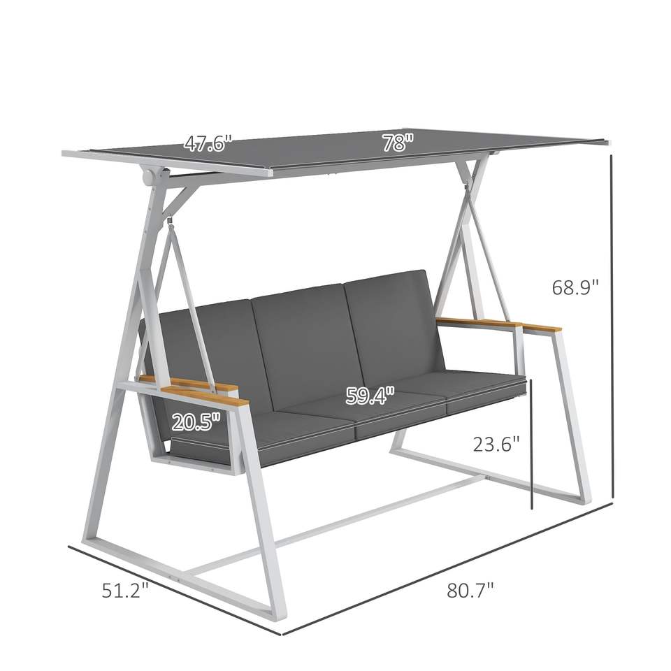 3-Person Adjustable Gray Outdoor Porch Swing Chair with Removable Cushions for Garden & Backyard