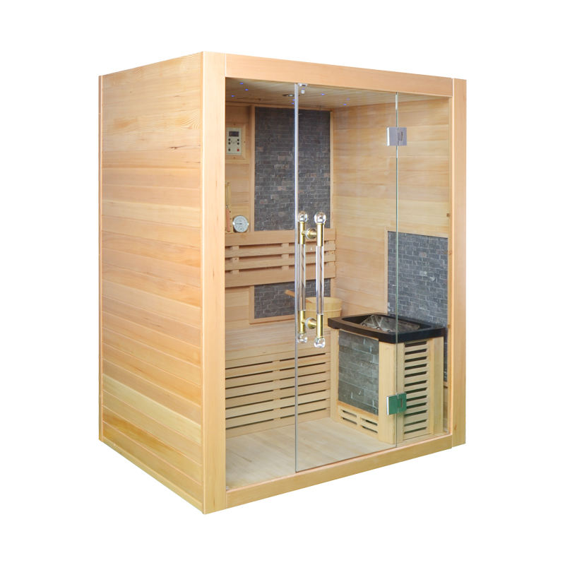 ห้องซาวน่าอบไอน้ำแบบเปียกสำหรับ2คนทำจากไม้ในร่ม