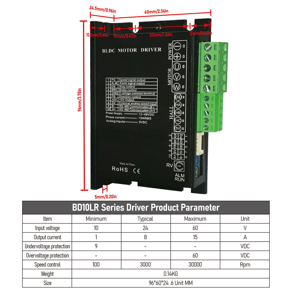 3 Phase 0.1Nm 10000rpm Electric Motor Nema 23 BLDC Motor Brushless DC Motor 24V Kit With Driver RS485