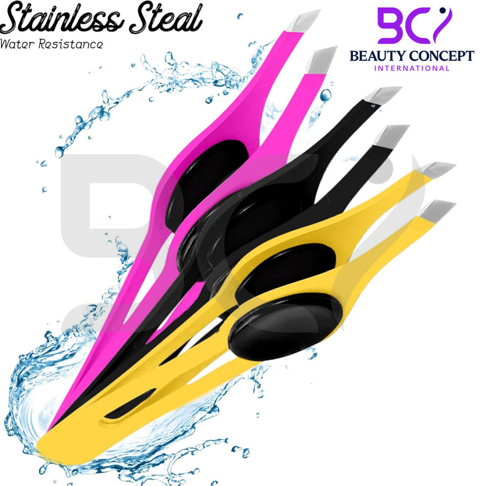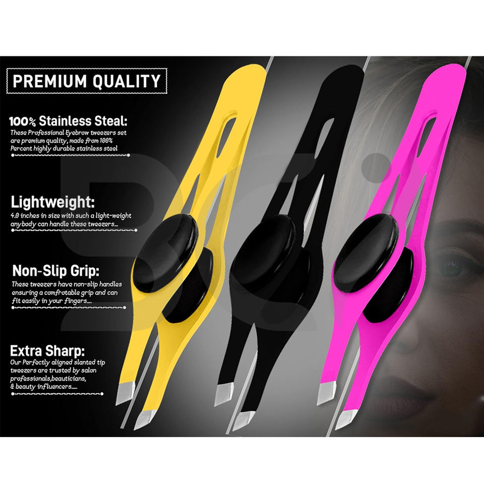 แหนบปลายเฉียง 3 ชิ้น ทำจากสแตนเลสสตีล รับผลิตตามแบบ (OEM) ทนทาน จับกระชับมือ ไม่ลื่น สำหรับถอนขนคิ้ว ขนบนใบหน้า และขนคุด