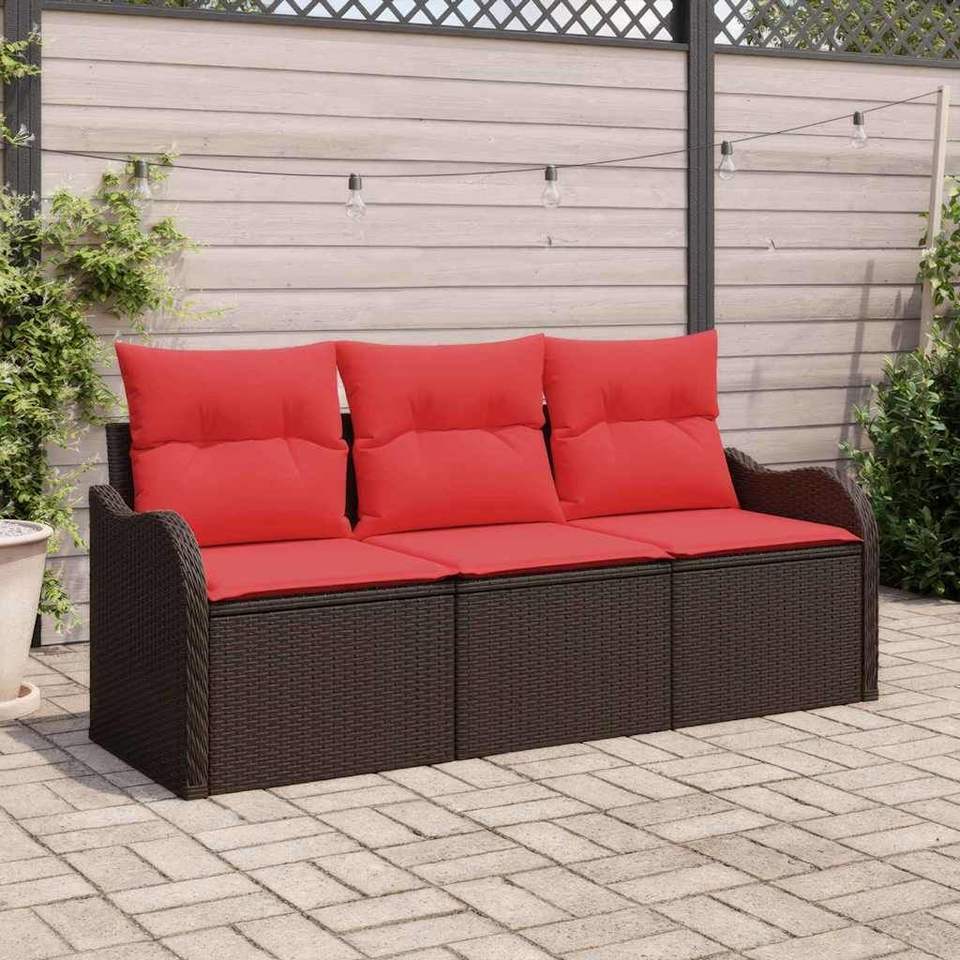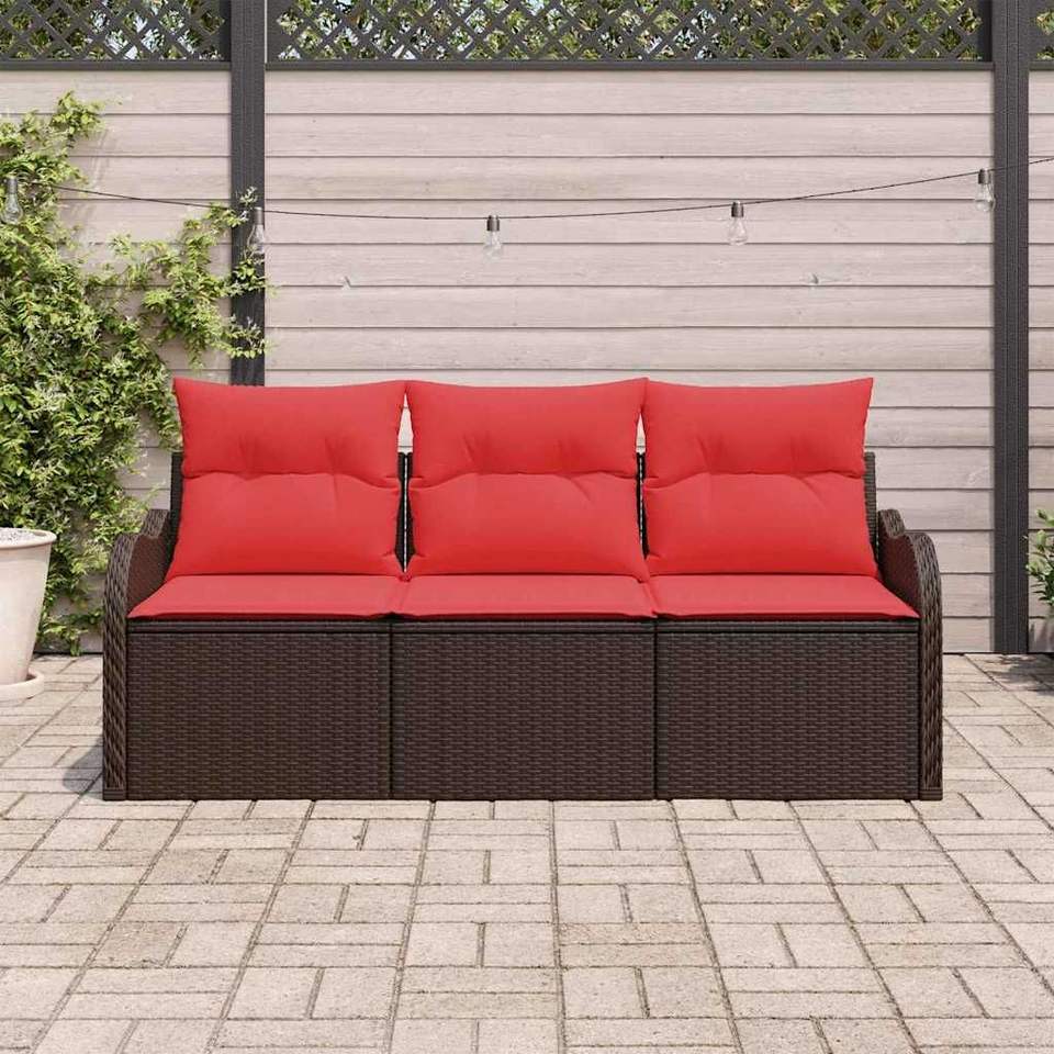 ชุดโซฟาสวนหวายโพลีสีน้ำตาล 3 ชิ้นพร้อมเบาะรองนั่ง