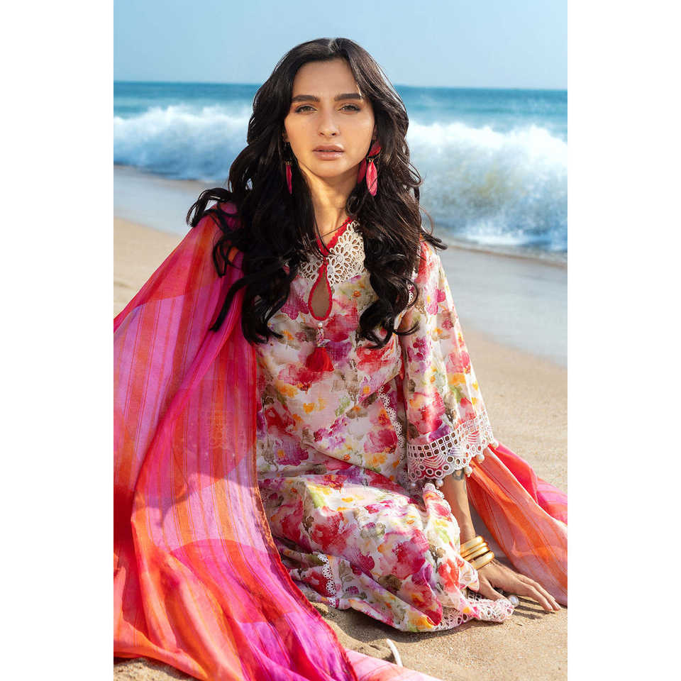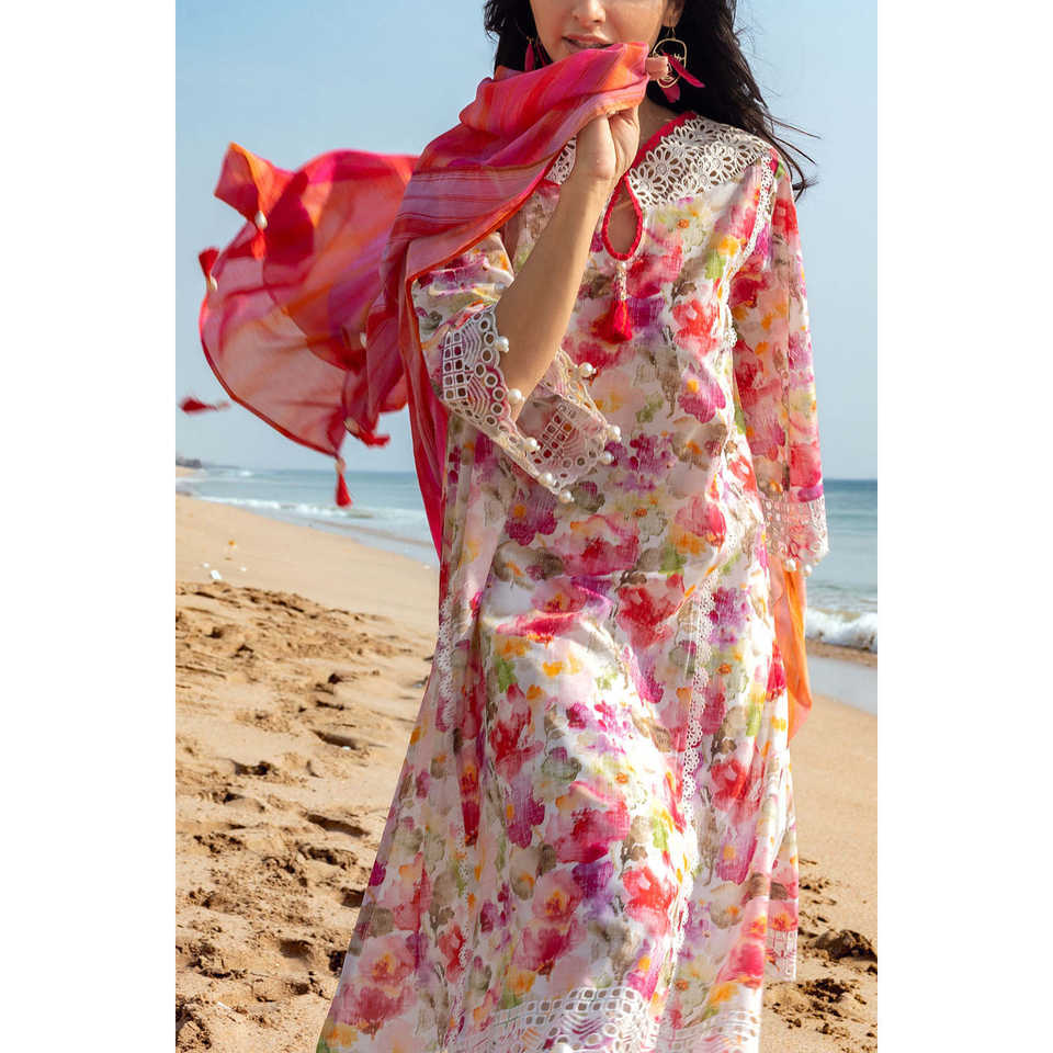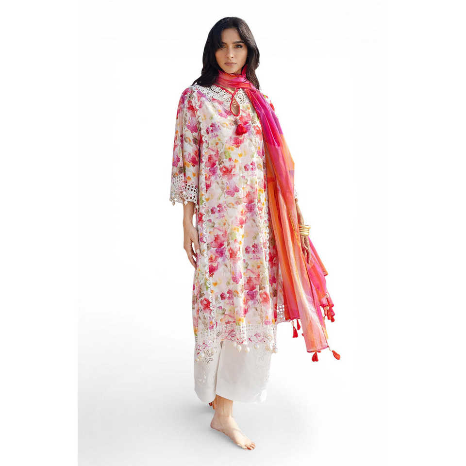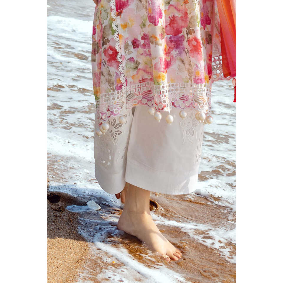 ชุดผ้ามัสลินปักลาย Schiffli รุ่น CL-52645 แบบ 3 ชิ้น สำหรับผู้หญิง พร้อมผ้าคลุมไหล่ลูกไม้ลายวาดมือ สไตล์หรูหรา ความยาวระดับเข่า ไซส์ XS