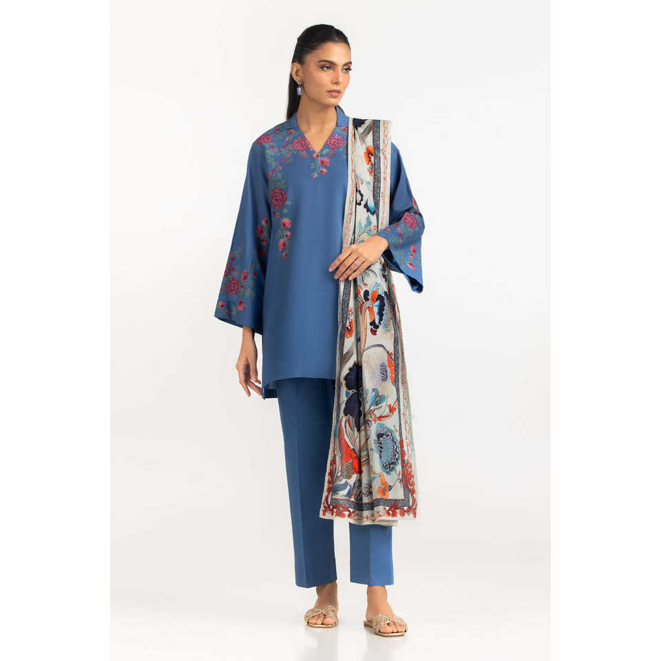 ชุดสูทผ้าแคมบริกปักลาย 3 ชิ้น พร้อมผ้าพันคอ รุ่น IPST-SCF-77403