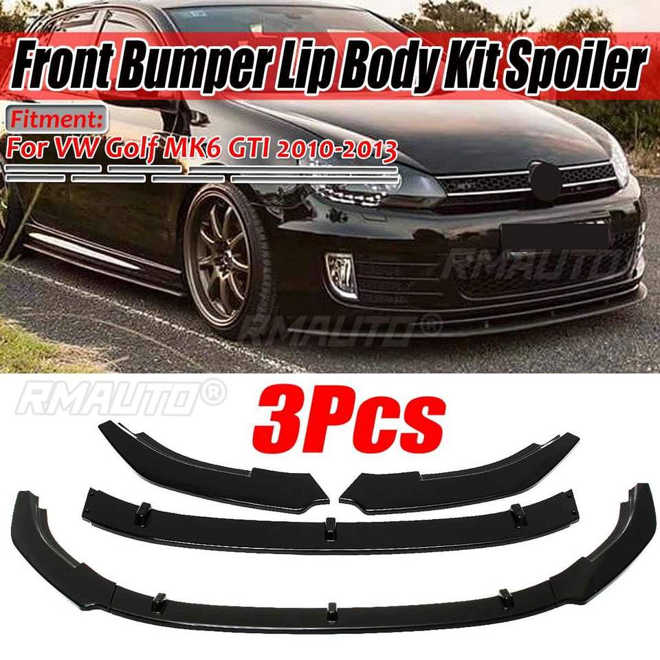 ชุดแต่งสปอยเลอร์กันชนหน้ารถยนต์ 3 ชิ้น ลายคาร์บอนไฟเบอร์/สีดำ สำหรับรถยนต์ VW Golf MK6 GTI ปี 2010 2012 2013