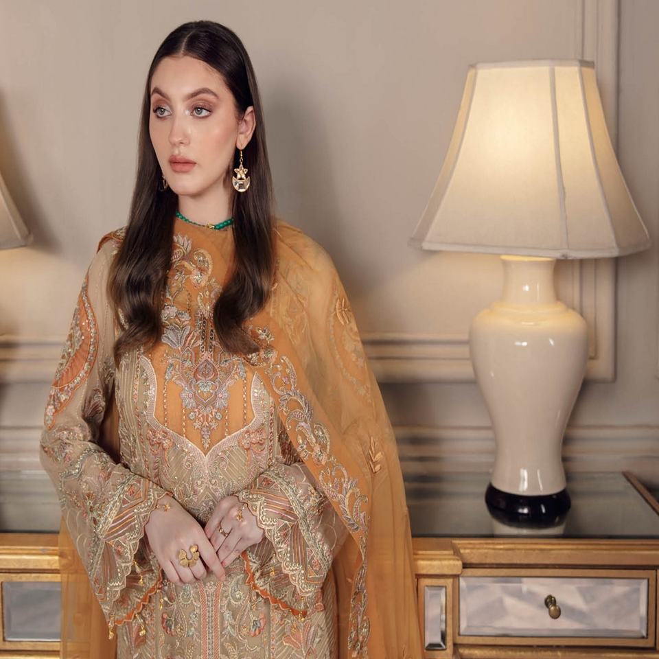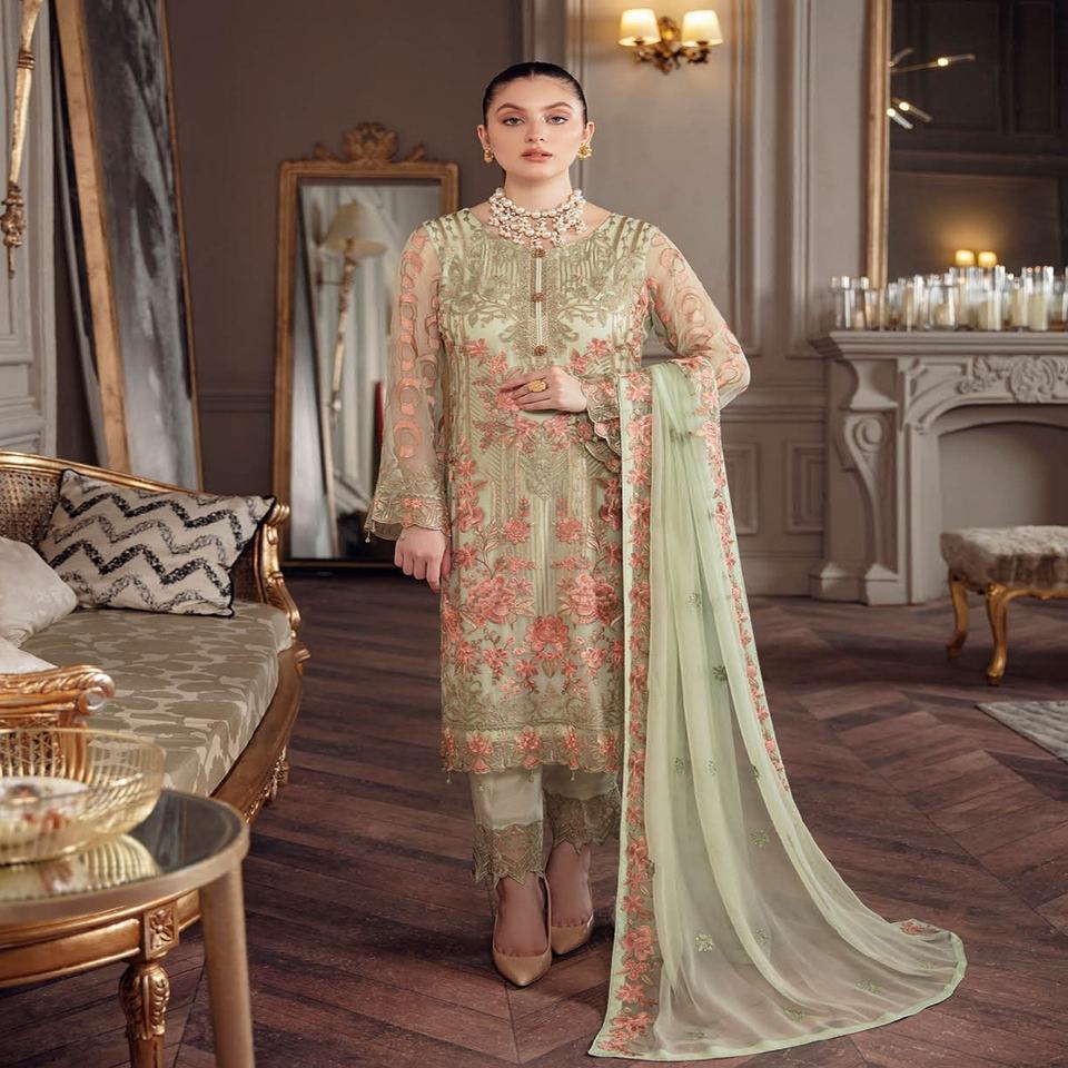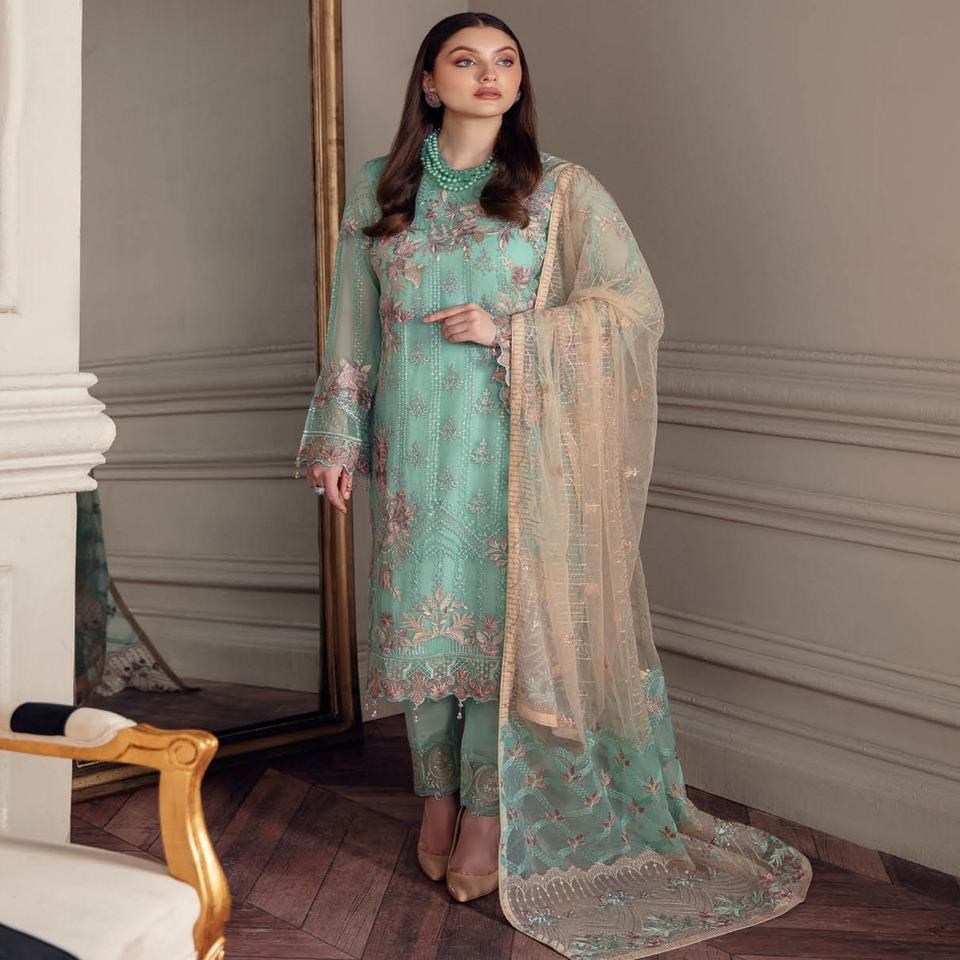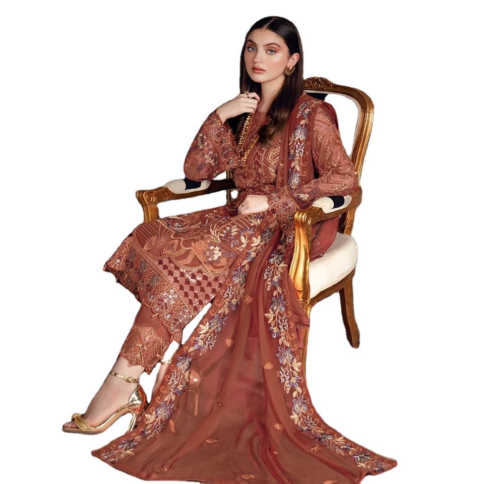 ชุดสูทแต่งงานผ้าชีฟอง3ชิ้นสำหรับผู้หญิงดีไซน์เนอร์จากปากีสถานลายบั้ง3ชิ้นสำหรับงานปาร์ตี้อินเดียและปากีสถาน