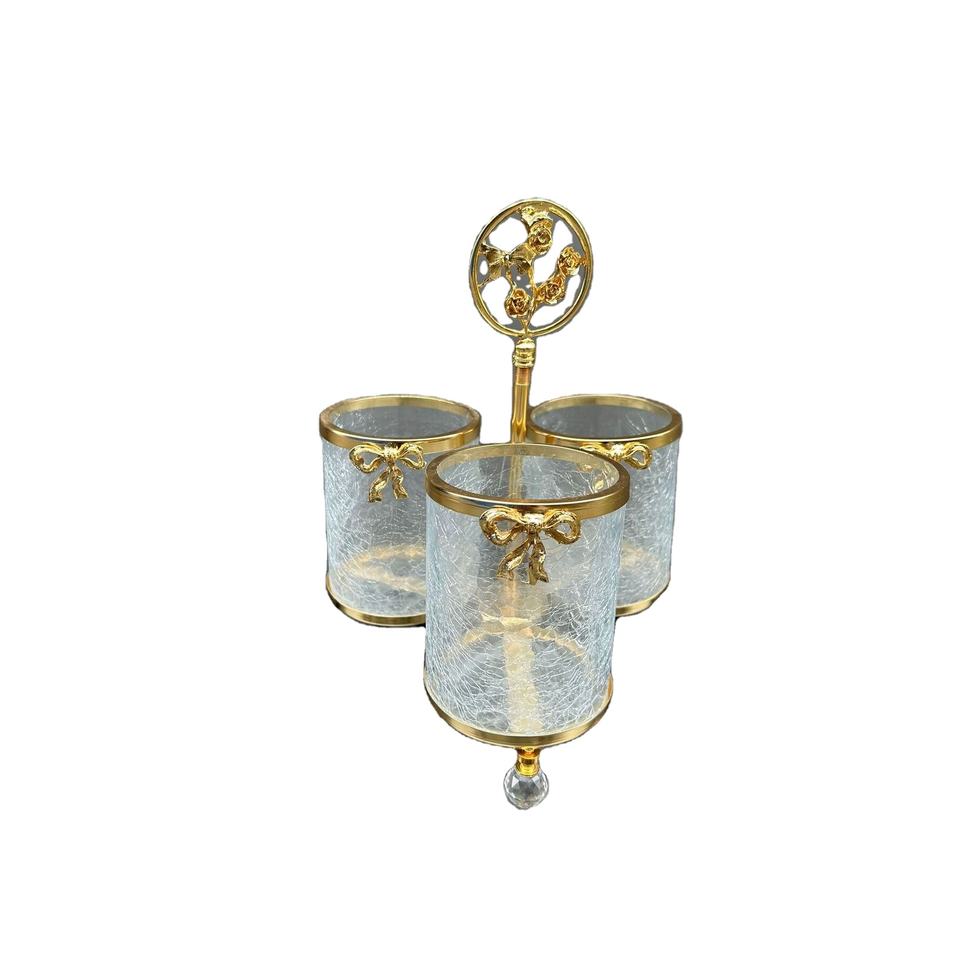 ชุดถ้วยใส่อาหารแบบคลาสสิก 3 ชิ้น สีทอง ทำจากโลหะ พร้อมที่วางช้อนสำหรับเสิร์ฟ ผลิตในประเทศตุรกี