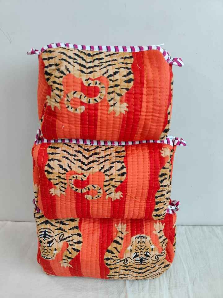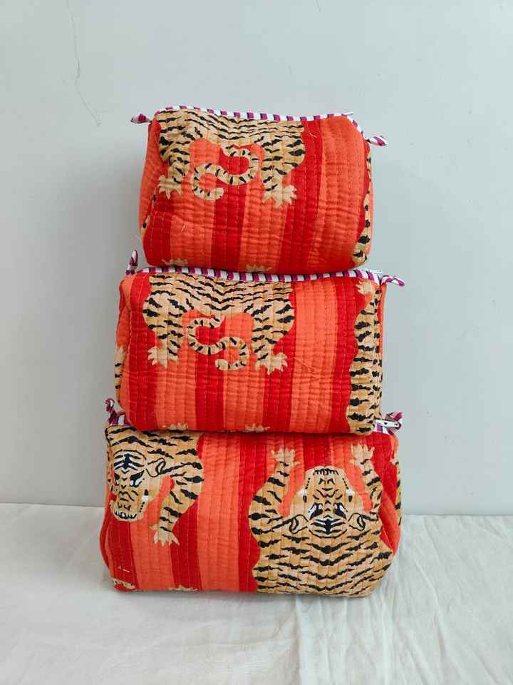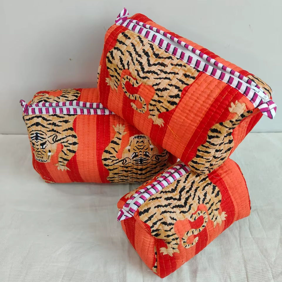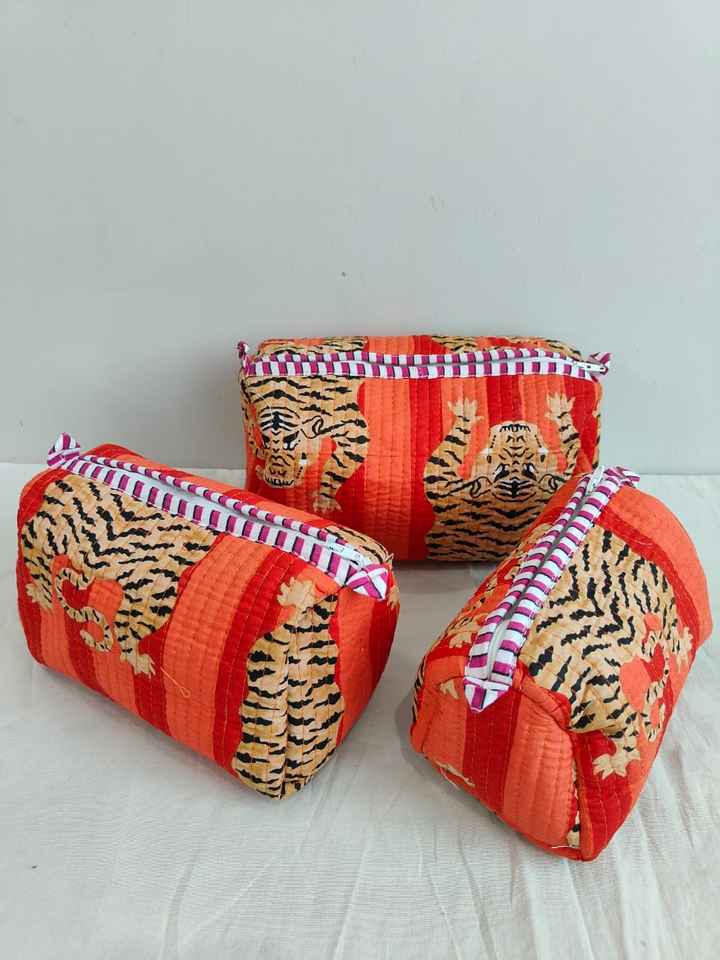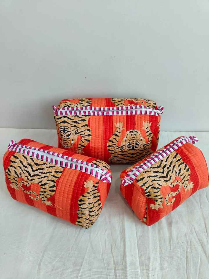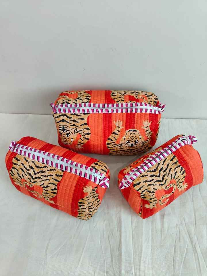 ชุดกระเป๋าเครื่องสำอางน้ำหนักเบาแบบมีซิปพิมพ์ลายสัตว์ (เสือ) ผ้าฝ้าย 3 ชิ้น พร้อมกระเป๋าจัดระเบียบสำหรับการเดินทางและการใช้งานแบบสบายๆ