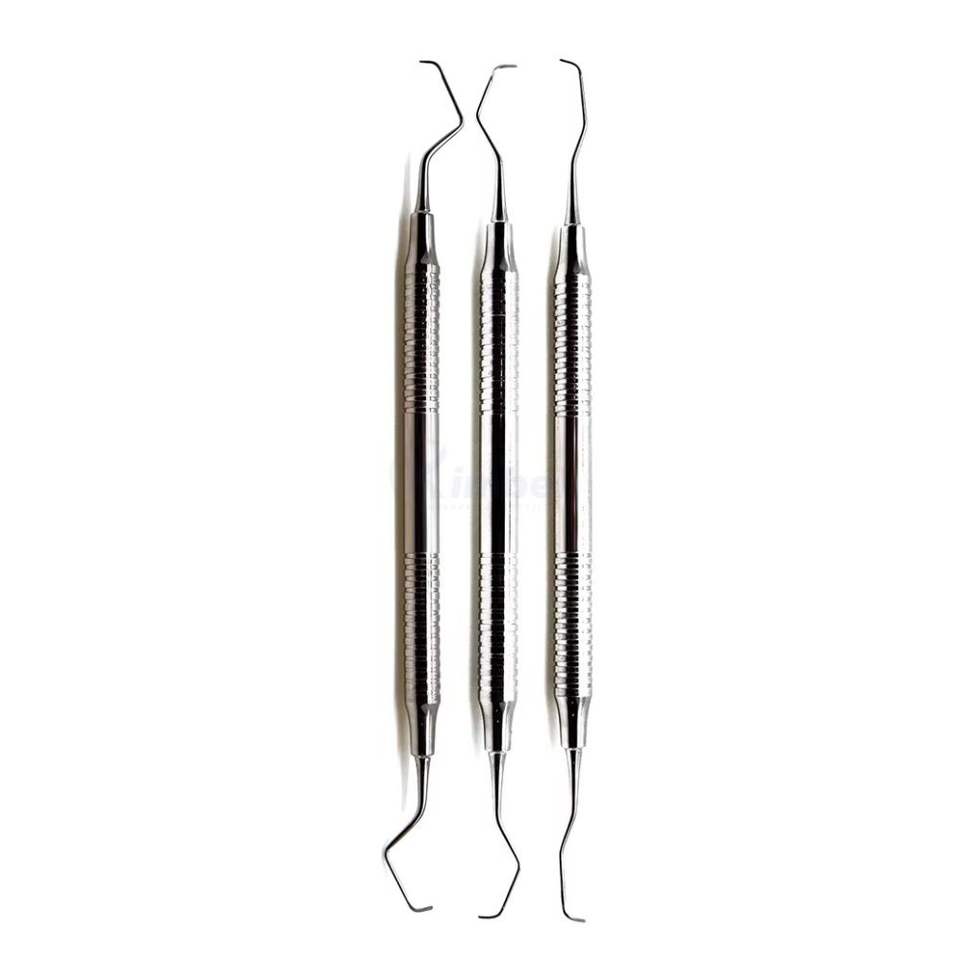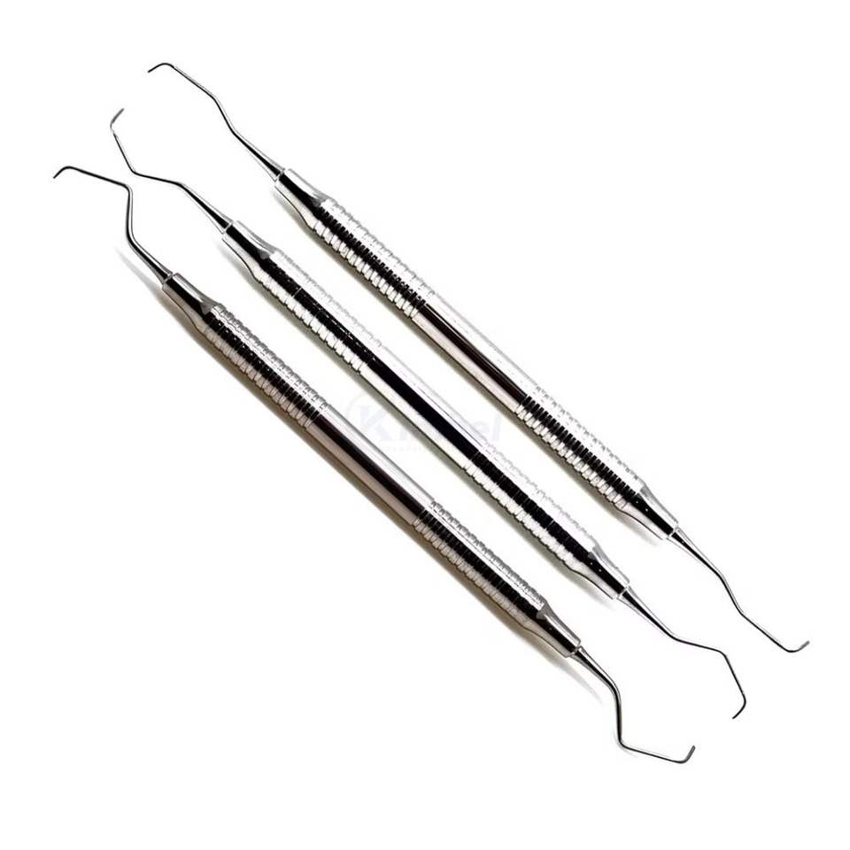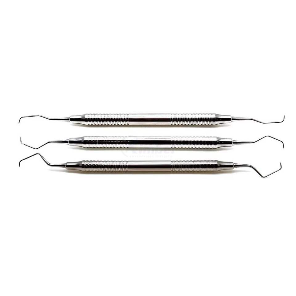 ชุดเครื่องมือขูดหินปูนแบบสองด้าน 3 ชิ้น ทำจากสแตนเลสสตีล สำหรับมืออาชีพ ใช้ขูดคราบหินปูนและกำจัดคราบพลัค