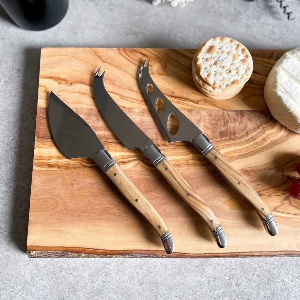 ชุดมีดชีส 3 ชิ้น ด้ามไม้มะกอก เป็นมิตรกับสิ่งแวดล้อม ของขวัญวันแม่สไตล์อิตาลีสำหรับคนรักชีส