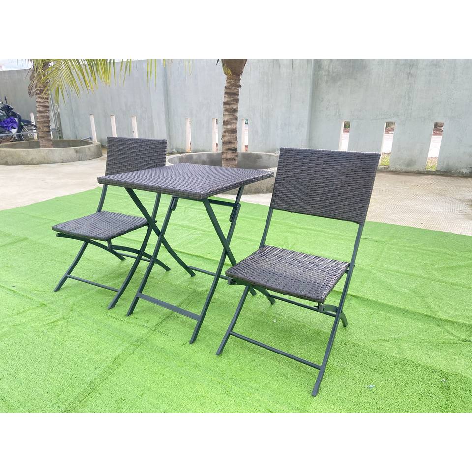3-Piece Folding Bistro Set for Outdoor Garden Use 1 Square Rattan Table & 2 Chairs