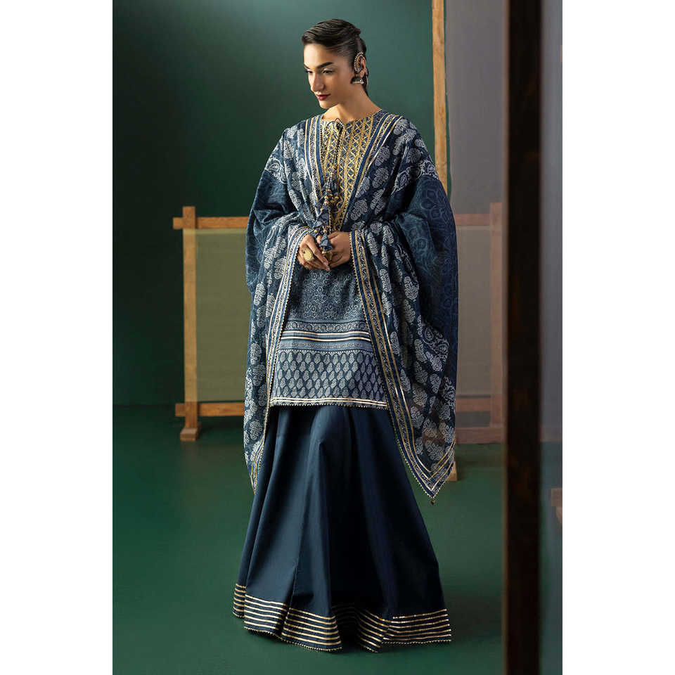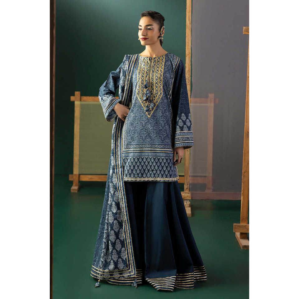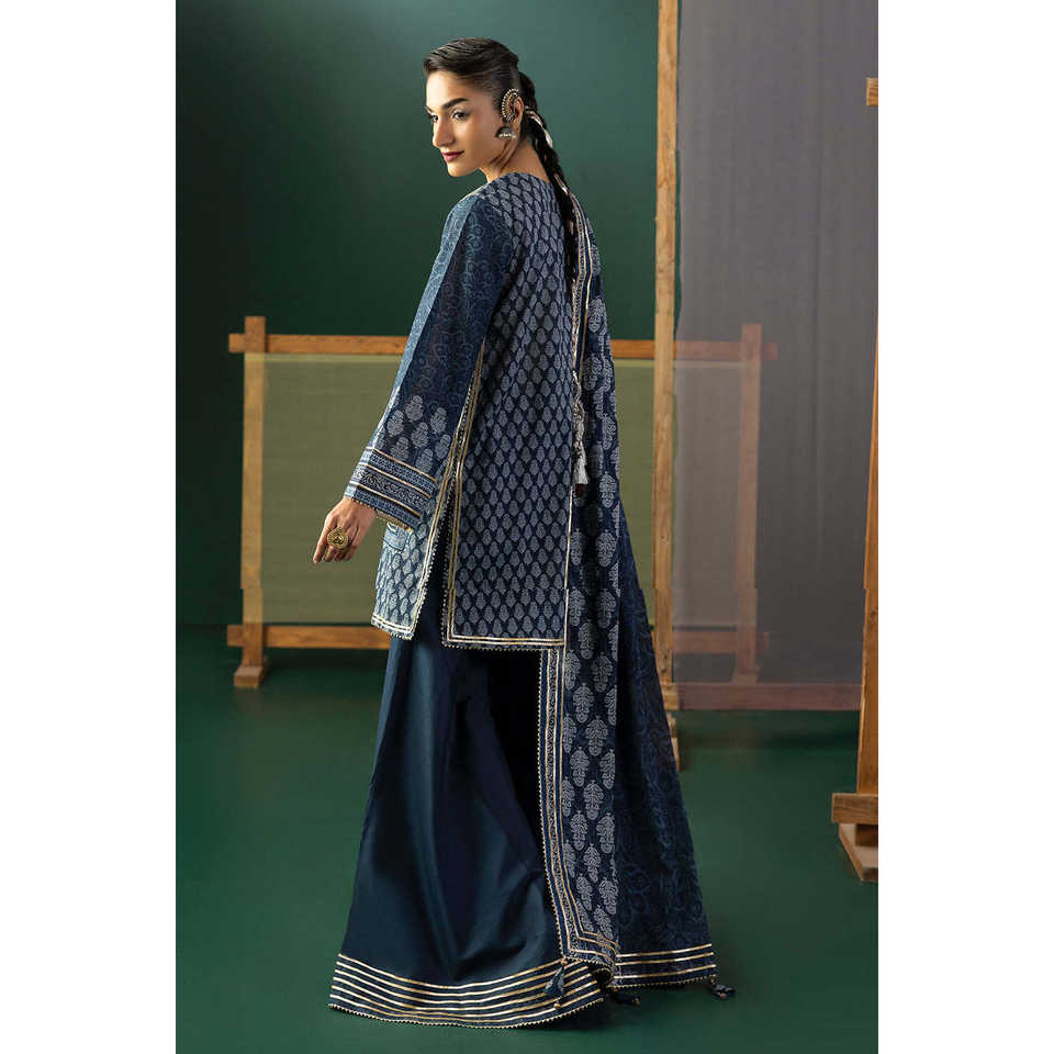 ชุดสูทผ้าลอนปักลายโกต้าสำหรับผู้หญิง 3 ชิ้น พร้อมผ้าคลุมไหล่พิมพ์ลาย รุ่น CL-62039