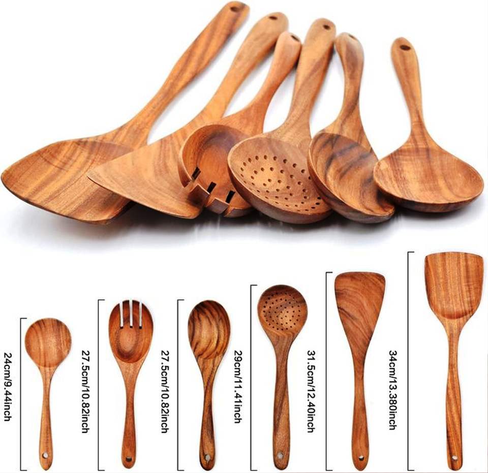 3-Piece Kitchen Spoon Set Handmade Acacia Wood Salad Tools Unique KETCHENWAR Wooden Server Set of 2
