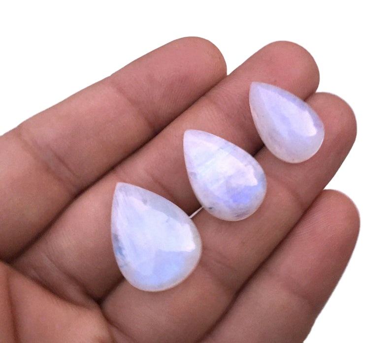 3ชิ้นธรรมชาติรุ้งมูนสโตนลูกแพร์เรียบรูปร่าง Cabochons 2020ขายส่งผู้ผลิตของแท้ที่มีคุณภาพสูง