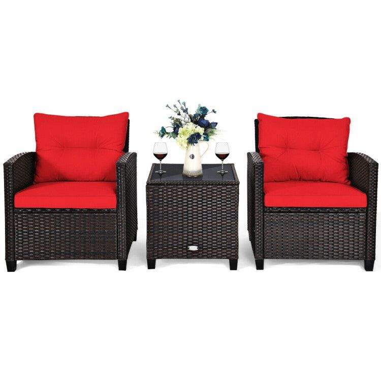 ชุดเฟอร์นิเจอร์ลานบ้านหวาย 3 ชิ้นพร้อมเบาะรองนั่งแบบซักได้สำหรับโซฟาในสวน