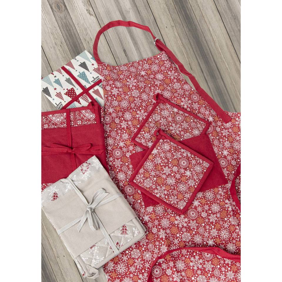 ชุดผ้ากันเปื้อน 3 ชิ้น และที่จับหม้อ 2 ชิ้น สำหรับเป็นของขวัญคริสต์มาส (NA24)