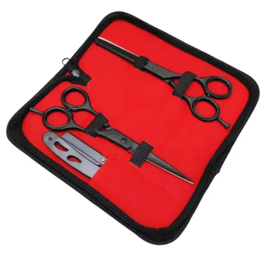 3-Piece Stainless Steel Straight Blade Beauty Kit Scissor Set & Razors for Hair Cutting Salon Hair Tools & Accessories