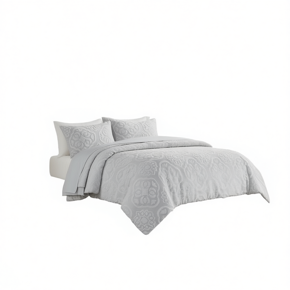 ชุดผ้าห่มนวมลายดอกไม้ถักทอสีเทาอ่อน 3 ชิ้น ผ้าฝ้าย คลาสสิค สำหรับตกแต่งบ้าน