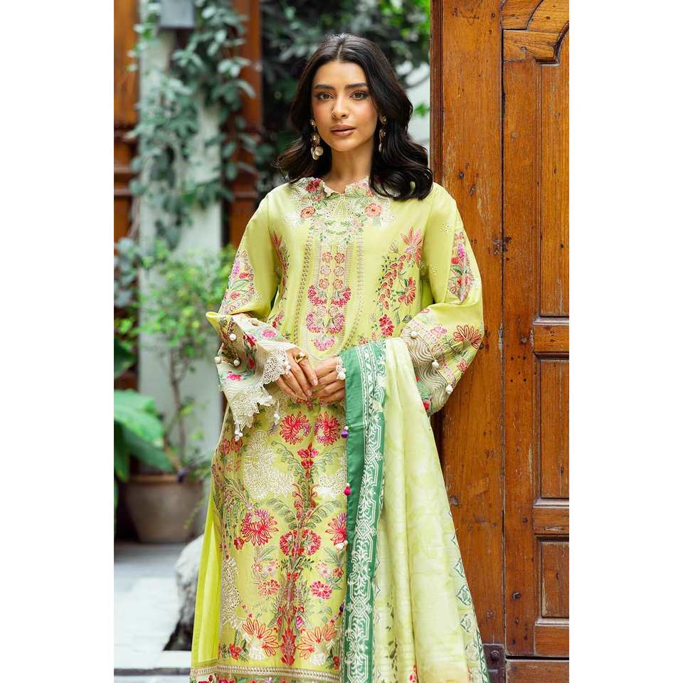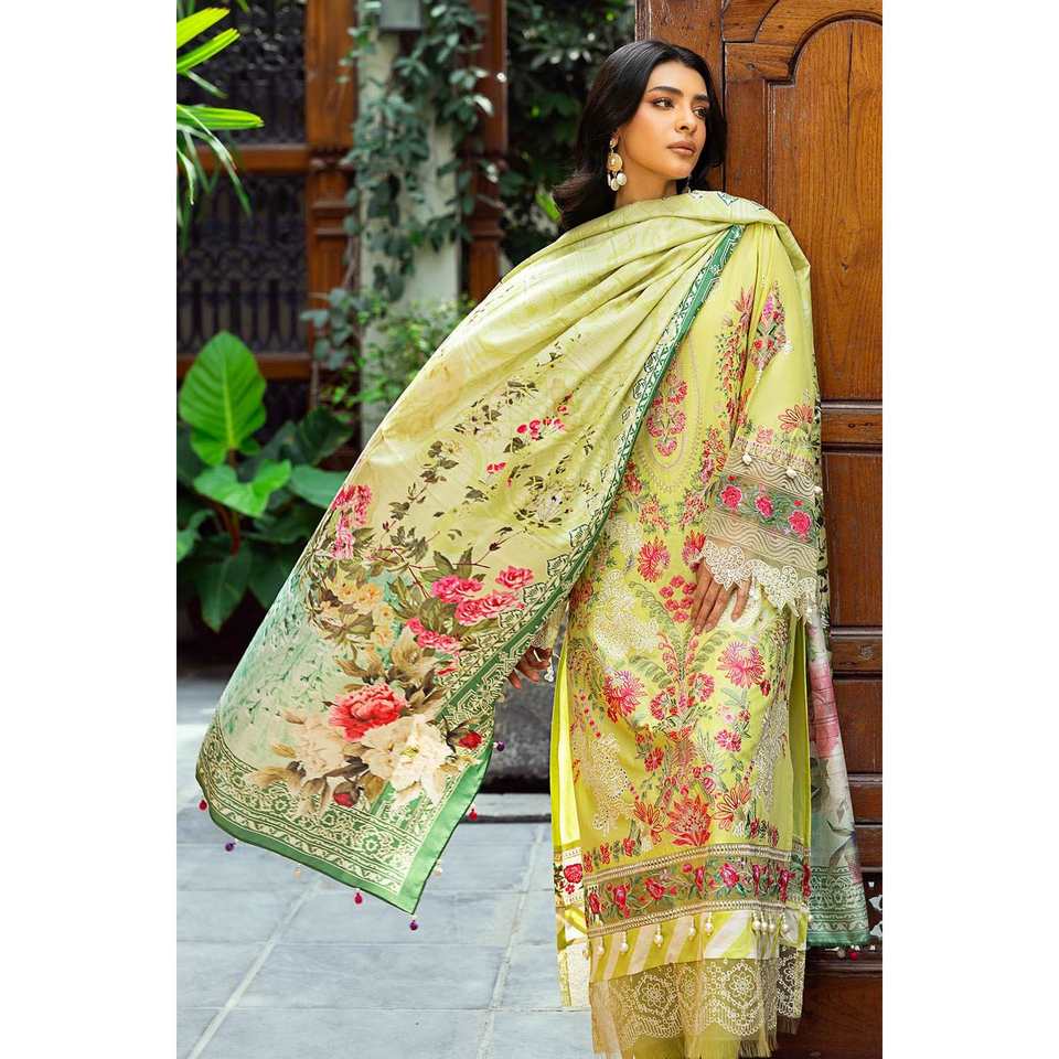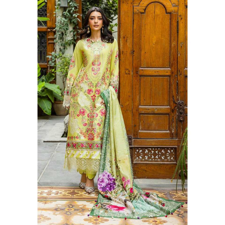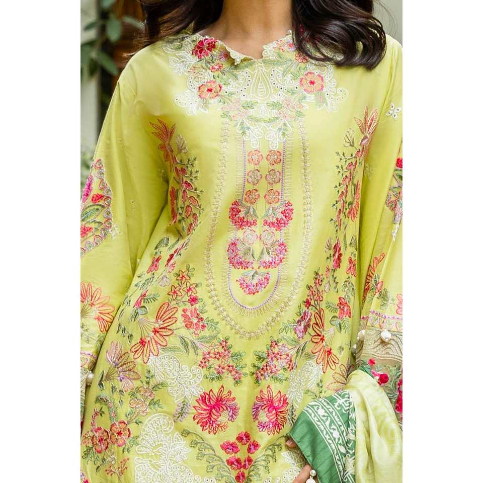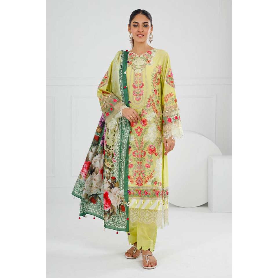 ชุดผ้าลอนปักลายสำหรับใส่ทุกวันแบบ 3 ชิ้น ไม่ได้เย็บติดกัน พร้อมผ้าคลุมไหล่ผ้าไหมทัสซาร์พิมพ์ลายดิจิทัล รุ่น SP-52024