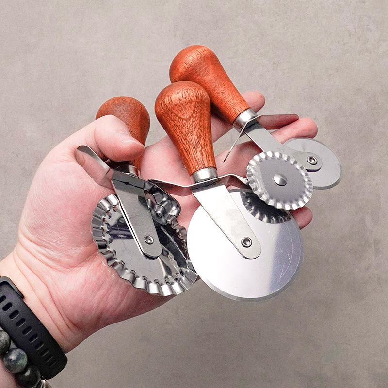 ชุดที่ตัดพิซซ่า 3 ชิ้น ด้ามไม้ พร้อมใบมีดสแตนเลส สำหรับตัดเค้ก ขนมอบ พิซซ่า และอุปกรณ์ทำขนม