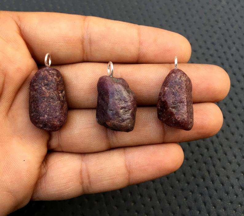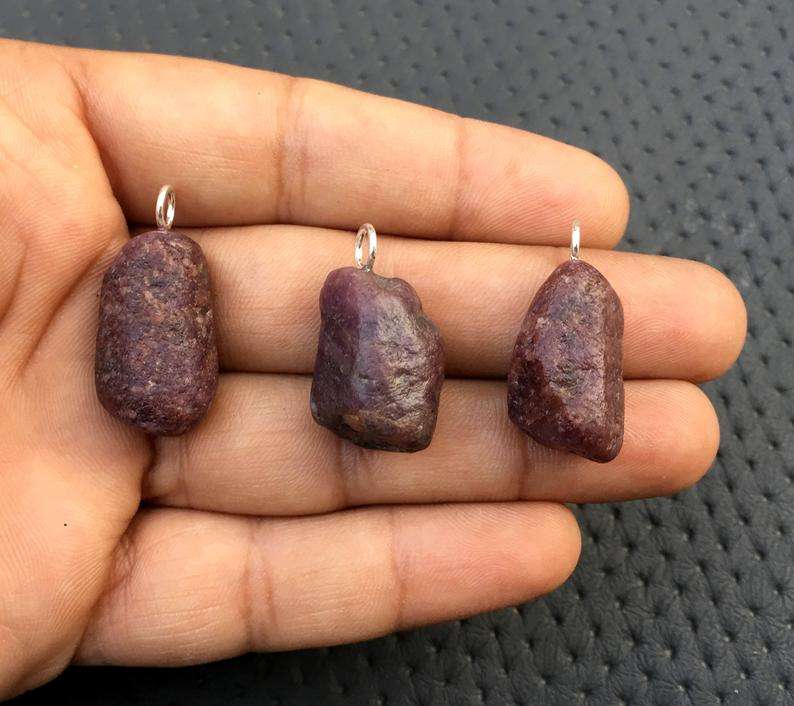 3ชิ้น92.5จี้เงินธรรมชาติไม่ได้รับการรักษาทับทิมพลอยดิบกรกฎาคมหินสีแดงขายส่งเครื่องประดับ
