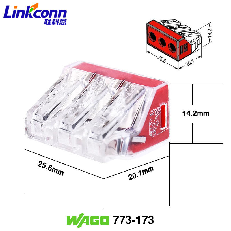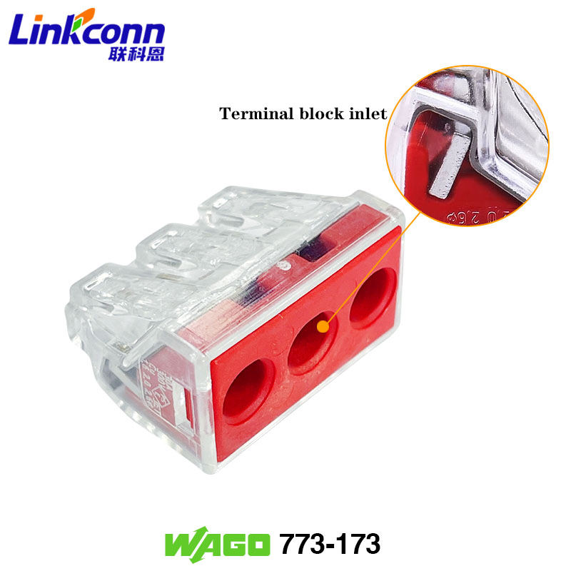 ขั้วต่อสายไฟ3ขาขั้วต่อแบบกด IEC400V ขั้วต่อดั้งเดิมของ Wagos สำหรับอุปกรณ์เสริมแสงสว่างไฟฟ้า773-173