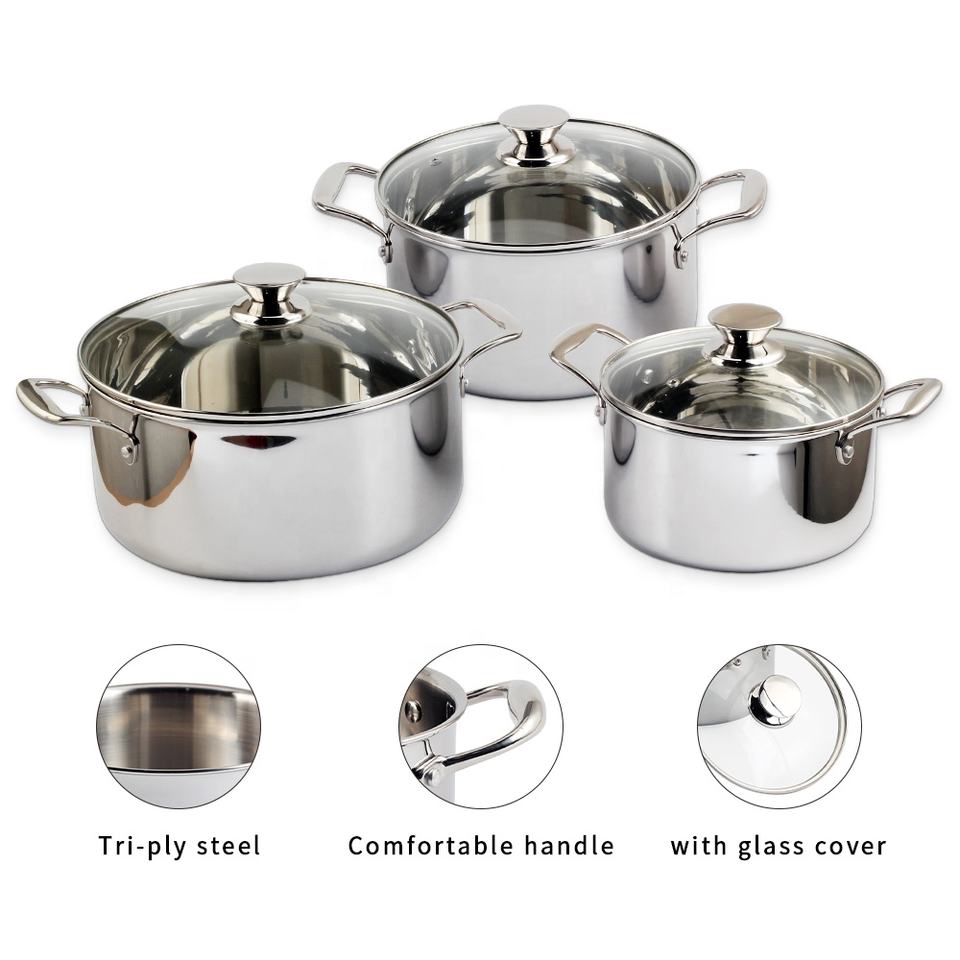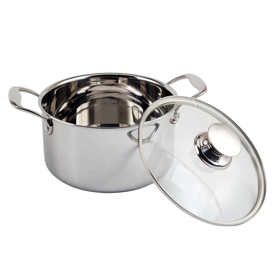 หม้อสต็อกสแตนเลส 3 ชั้น พร้อมฝาแก้ว สำหรับเตาแม่เหล็กไฟฟ้า เตาแก๊ส และเตาไฟฟ้า