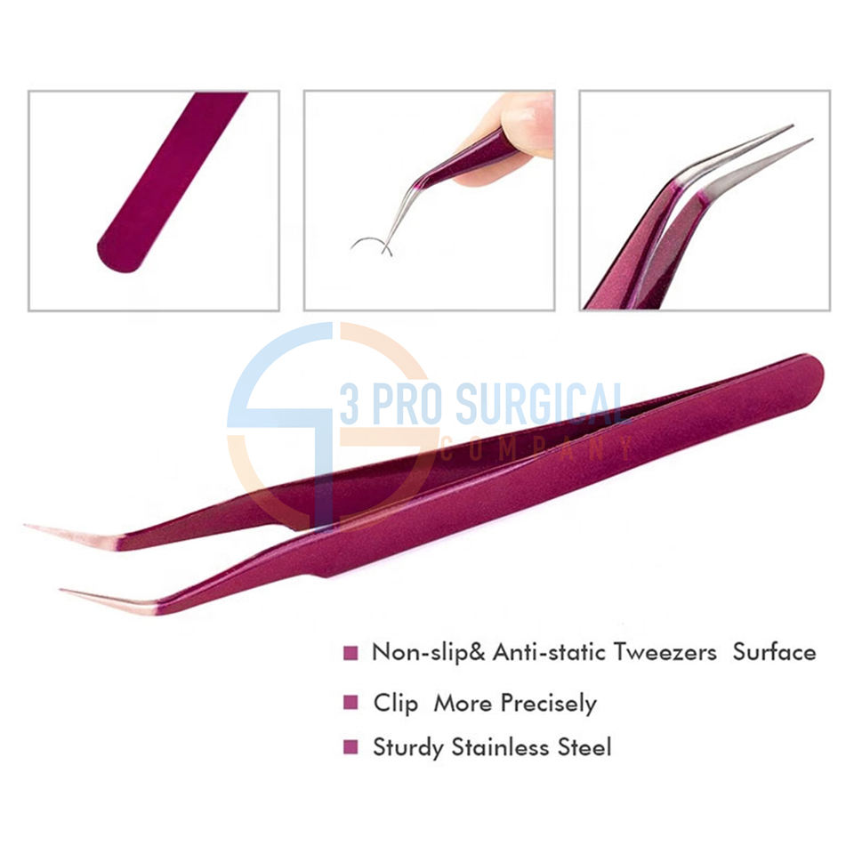 3 Pro ใหม่ขนตาต่อแหนบสแตนเลสสตีลตรง Pro เคล็ดลับและโค้งแหนบโค้งเครื่องมือแต่งหน้ามืออาชีพ