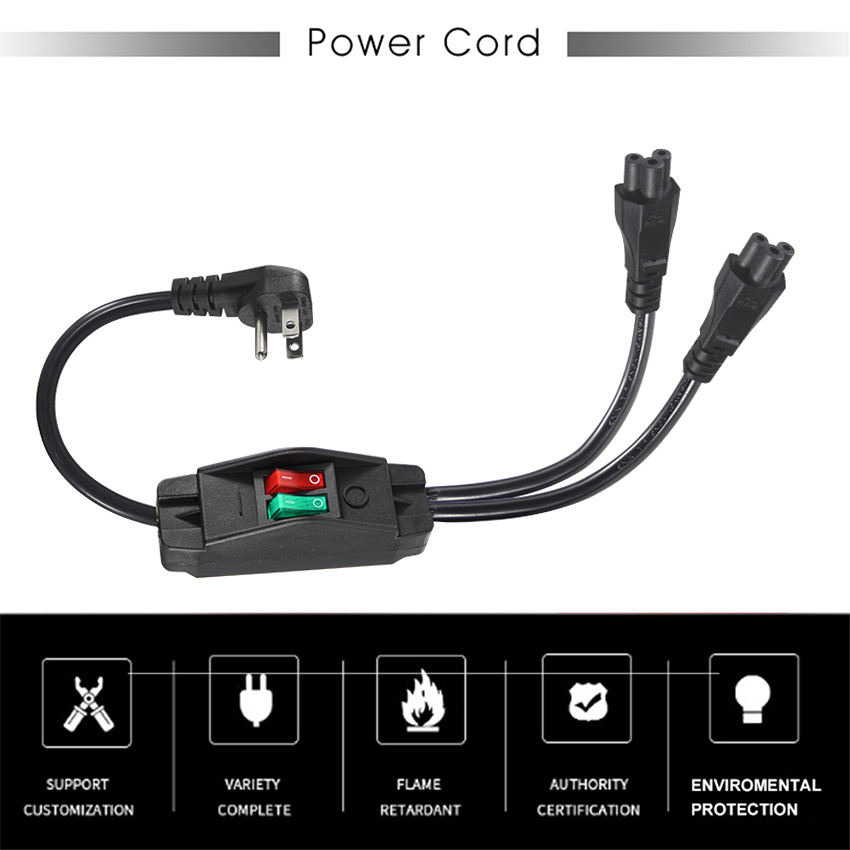 US 3-Pin Plug to Two Cloverleaf C5 Adapter with On/Off Switch