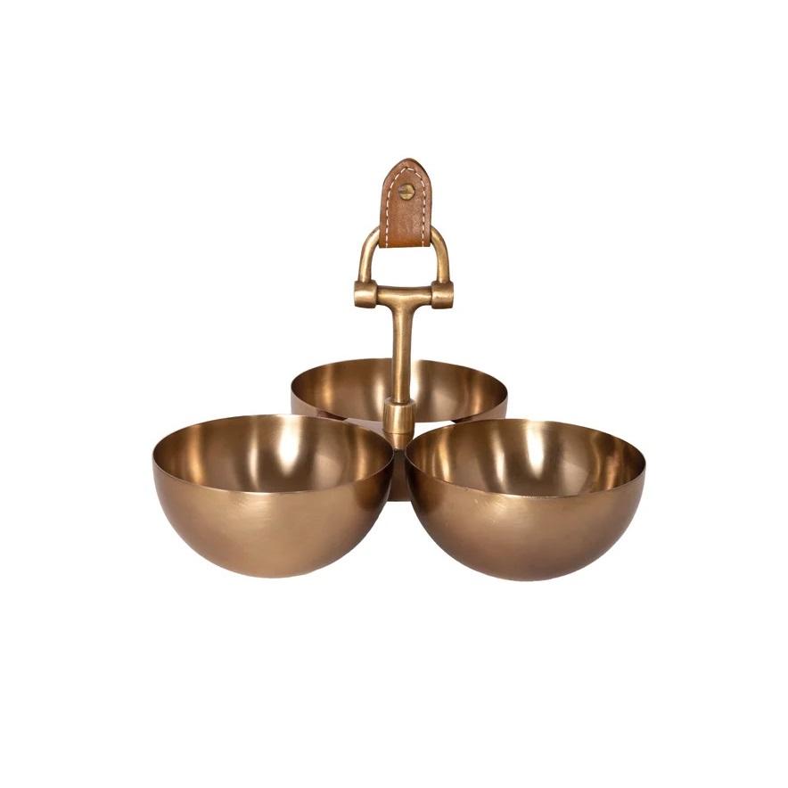 ชามเกือกม้าโลหะ3ส่วนดีไซน์หรูหราใหม่ชามเสิร์ฟขนมและถั่วพร้อมโลโก้ตามสั่ง