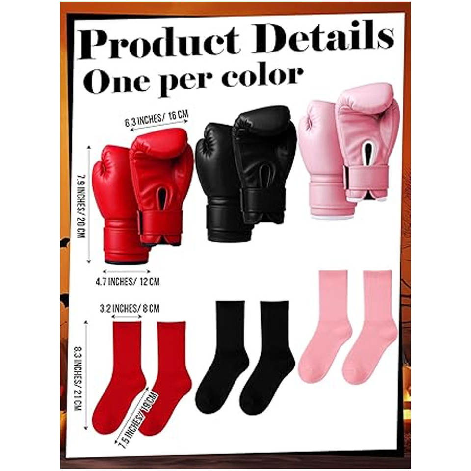3 ชุดเครื่องแต่งกายชกมวยฮาโลวีนสำหรับผู้หญิงสีดำสีแดงสีชมพูชุดนักมวยคอสเพลย์พร้อมเสื้อคลุมผ้าซาตินถุงมือชกมวยและถุงเท้า