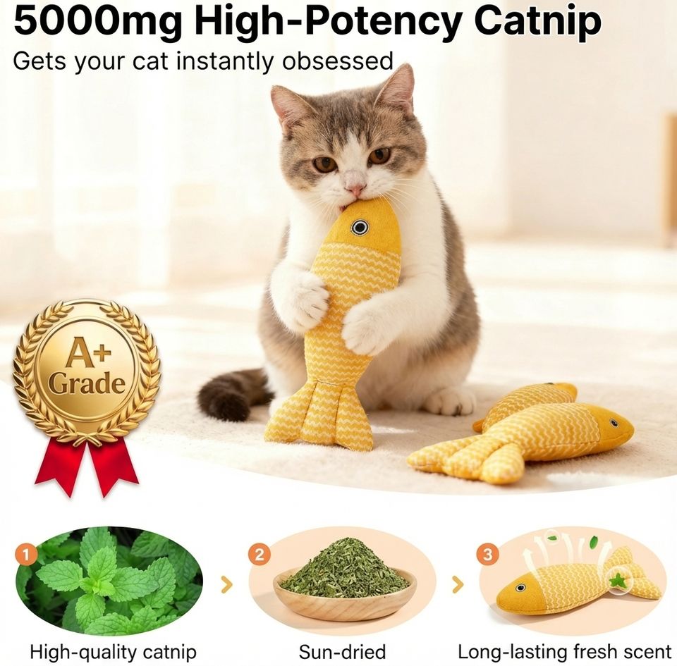 ของเล่นแมว 3 ขนาด รูปปลา ของเล่นแบบมีปฏิสัมพันธ์ พร้อมแคทนิป สำหรับแมวเล่น