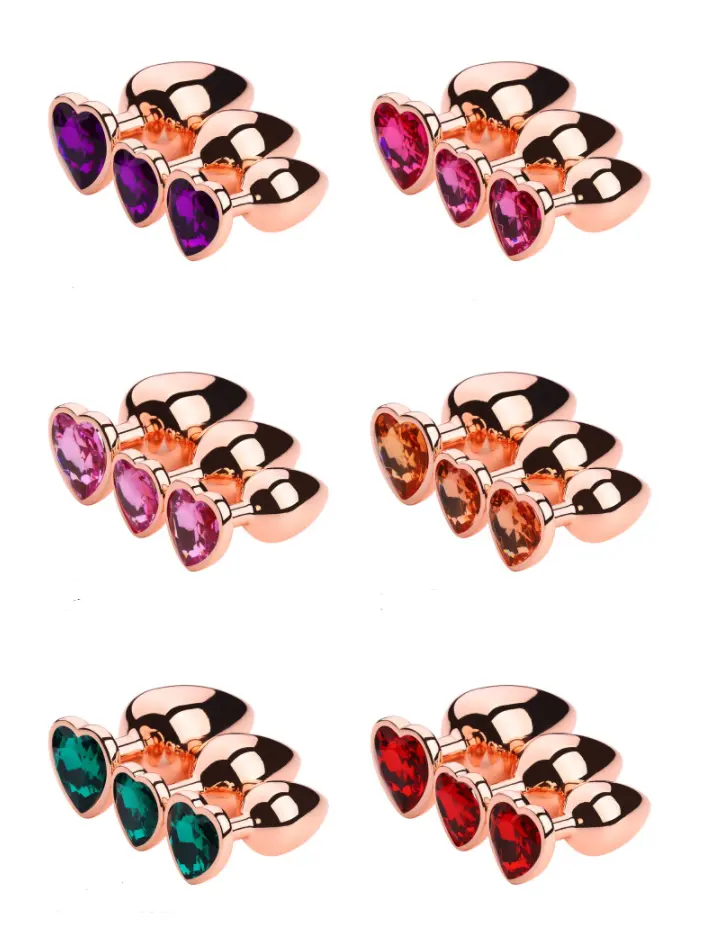 ชุดปลั๊กทวารหนักรูปหัวใจโลหะฐานประดับเพชร 3 ขนาด สีโรสโกลด์ สแตนเลส สำหรับผู้ใหญ่