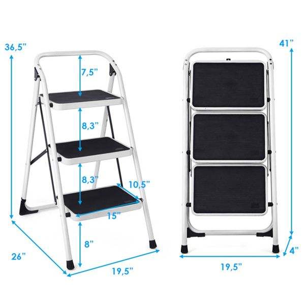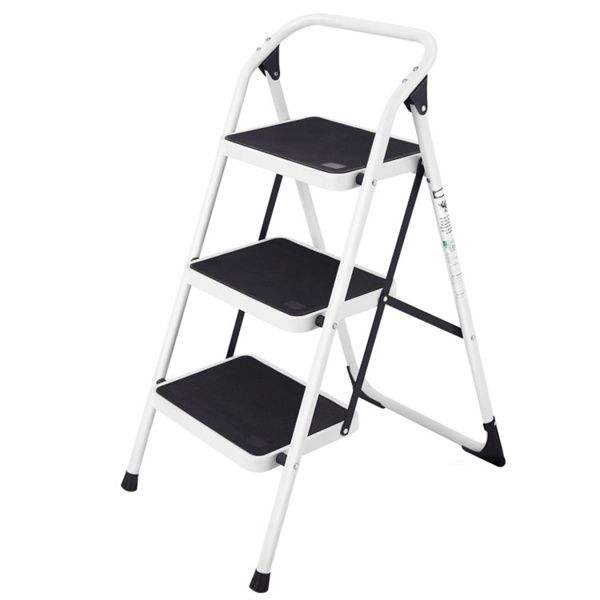 บันไดพับ 3 ขั้น รับน้ำหนักได้ 330 ปอนด์ ขั้นบันไดและแผ่นรองกันลื่น ดีไซน์น้ำหนักเบา ประหยัดพื้นที่ สีดำและสีขาว