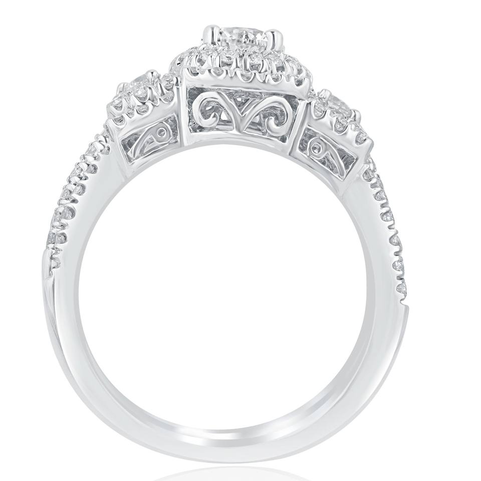 ชุดเจ้าสาวหิน3ชุดแหวนหมั้นเพชร CTW 1.28คู่ฮาโลเจนชุดครบรอบแต่งงานทองคำขาว14K ของขวัญสำหรับเธอ