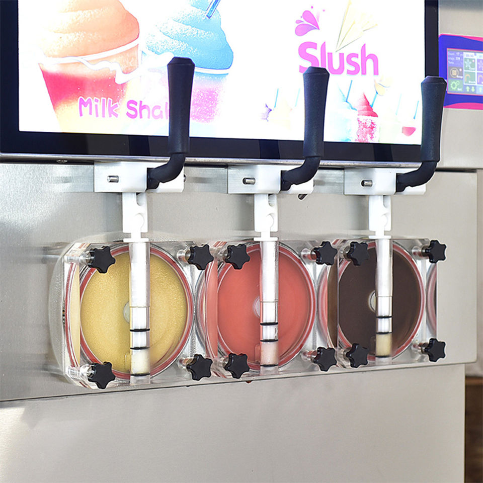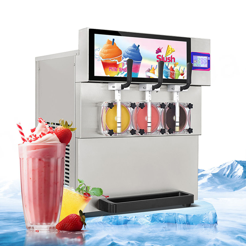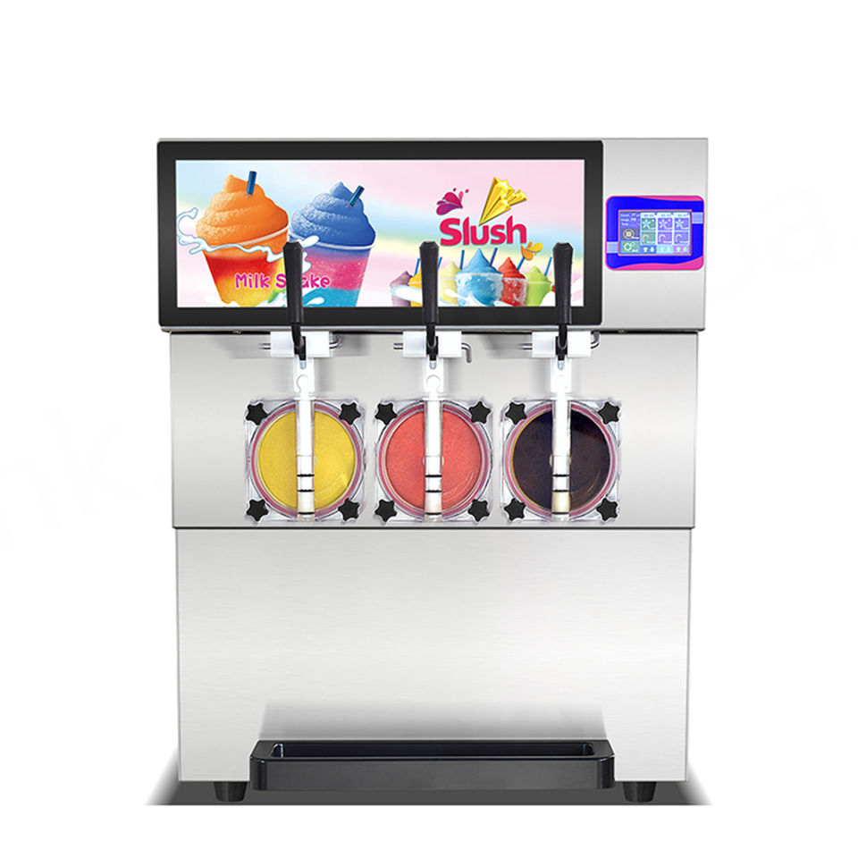 เครื่องทำเครื่องดื่ม Kolice ICM-108 แบบ 3 ถัง ขนาด 11 ลิตร 3 กระบอกสูบ ขนาด 4 ลิตร ใช้ไฟฟ้า สำหรับค็อกเทล มาร์การิต้า แกรนิต้า สมูทตี้ สโนว์แคป และโคล่า