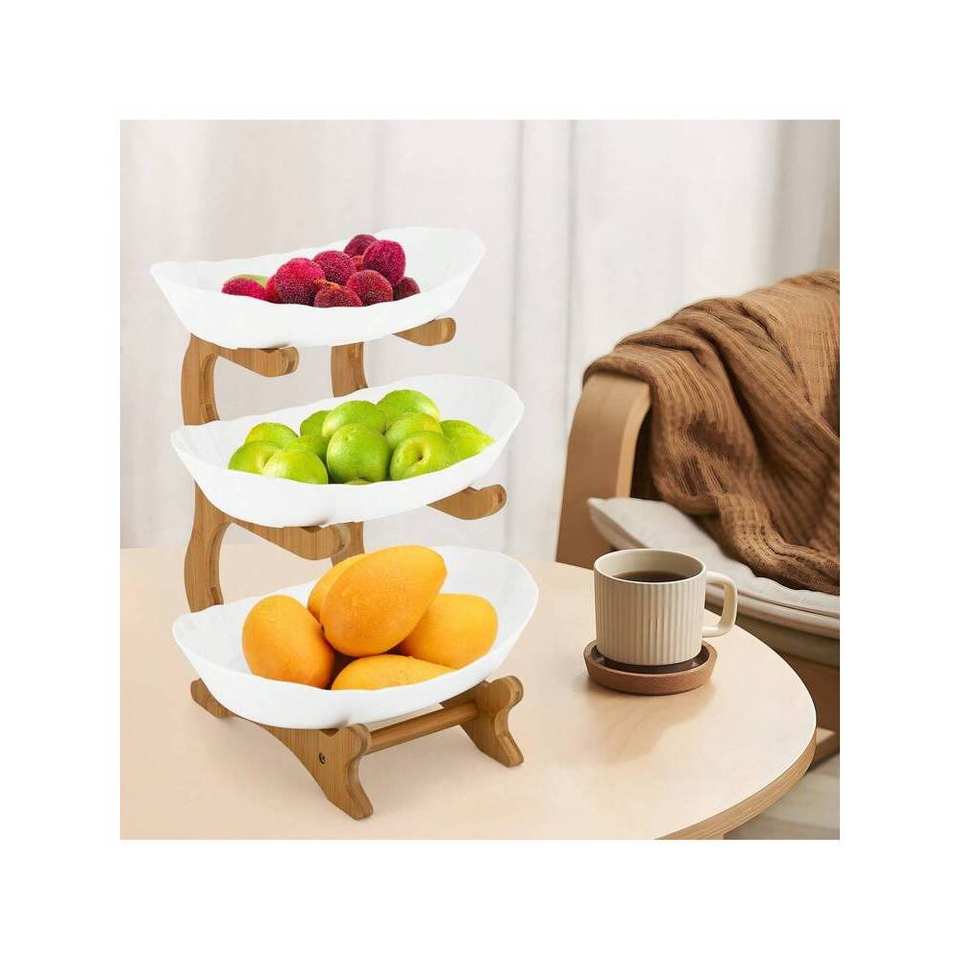 3-Tier Bamboo Serving Bowls with Stand PP Fruit Bowl 4-Stand Tray Plate Rack for Party Wedding for Holiday Coconuts