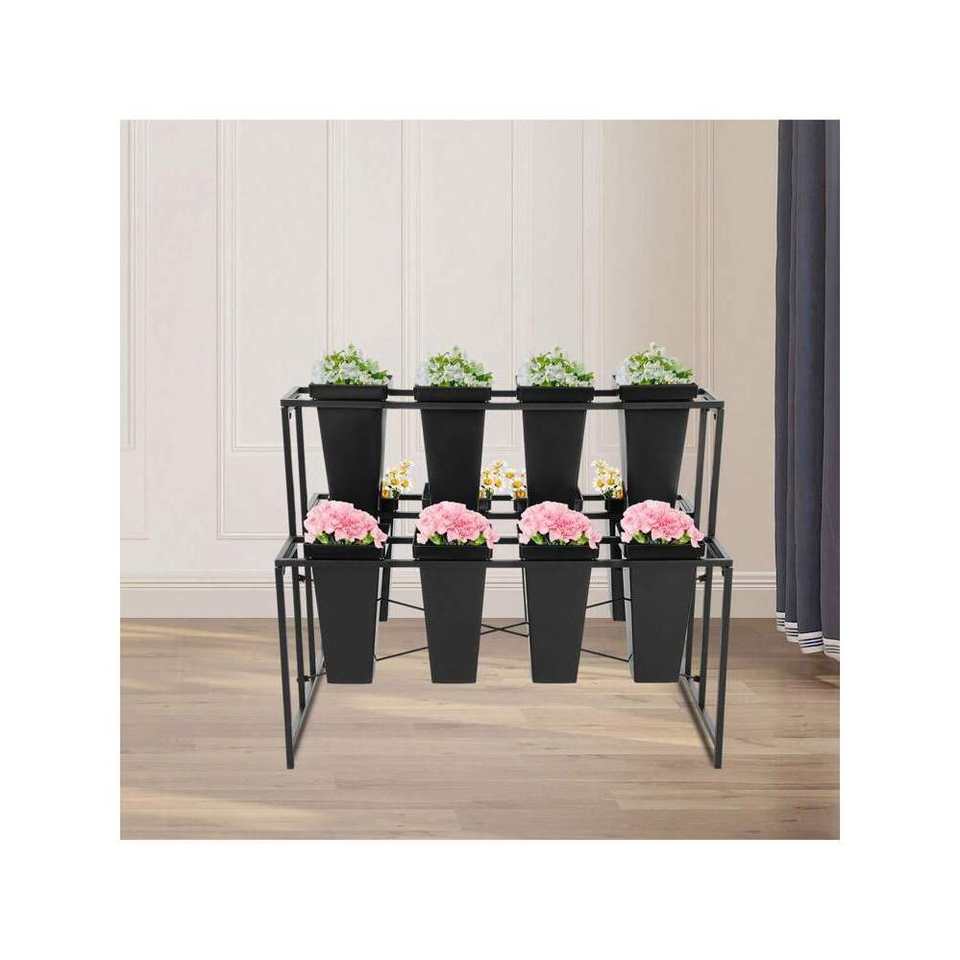 3-Tier Eco-Friendly Iron Flower Display Stand with Buckets Giant 3-Tier Plant Stand for Home Gardening