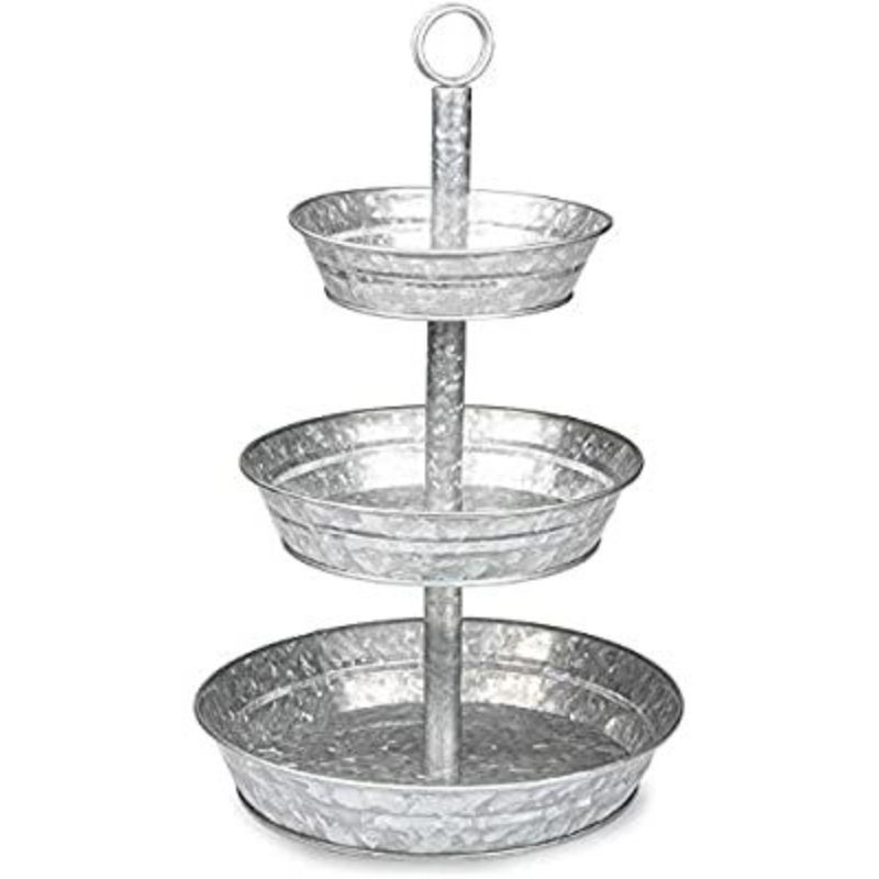 ชั้นวางของโลหะชุบสังกะสี 3 ชั้น สไตล์ฟาร์มเฮาส์ สำหรับวางเค้ก คัพเค้ก ของหวาน และตกแต่งบ้านและห้องครัว
