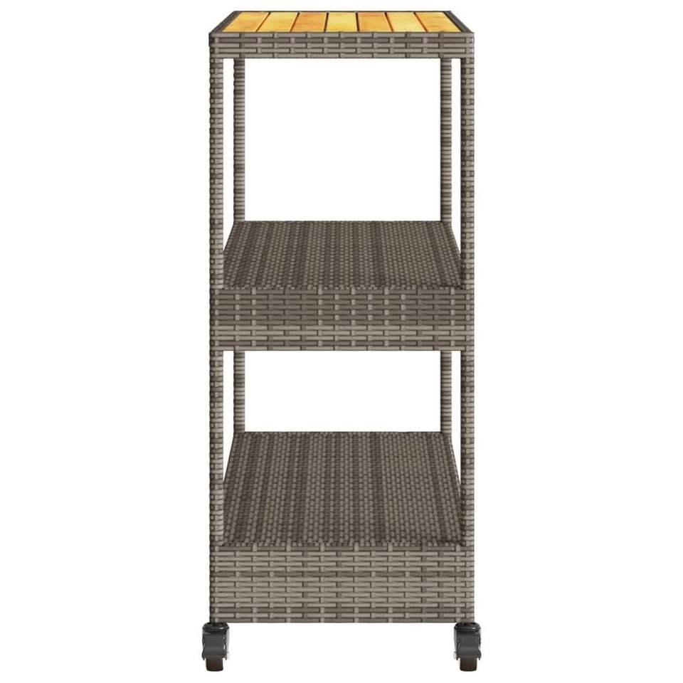 รถเข็นบาร์ 3 ชั้น สีเทา ทำจากหวายโพลีและไม้เนื้อแข็งอะคาเซีย ตู้บาร์ที่สวยงามและทนทาน